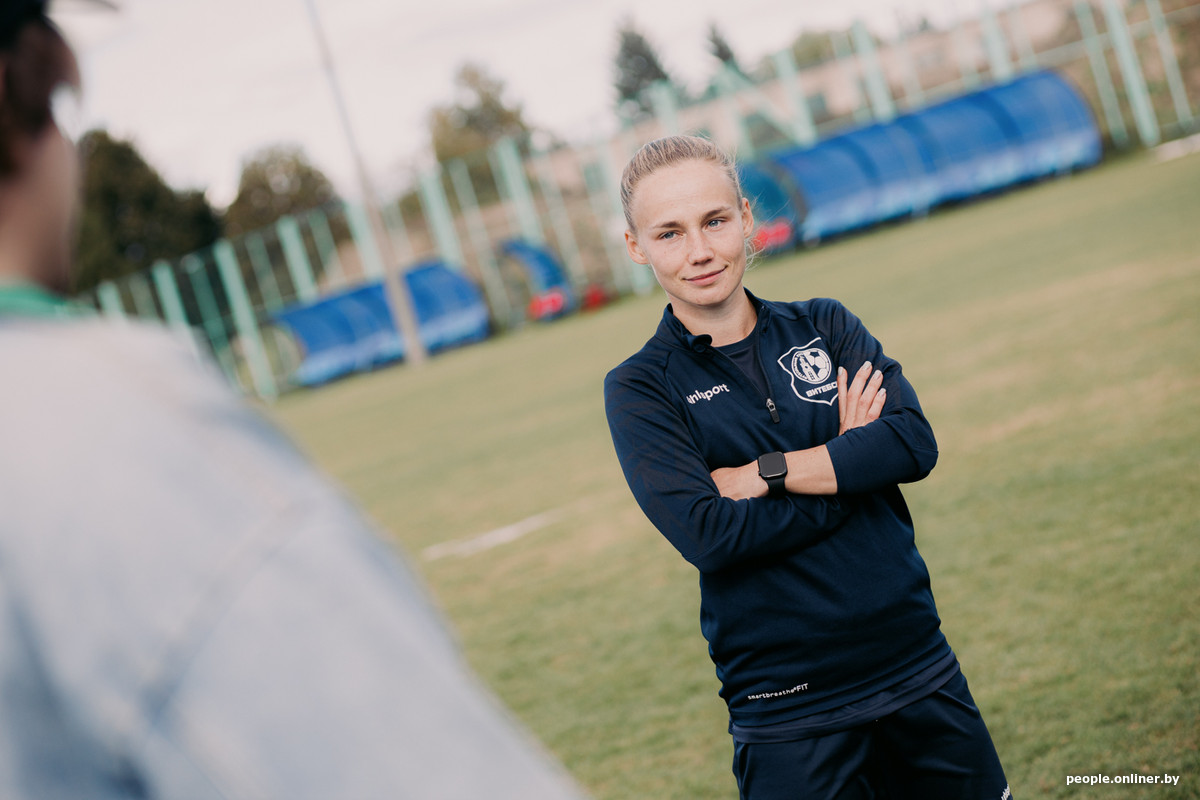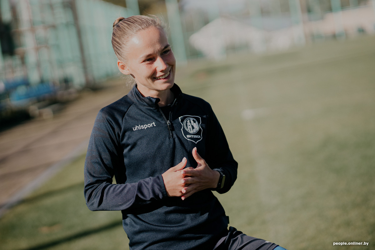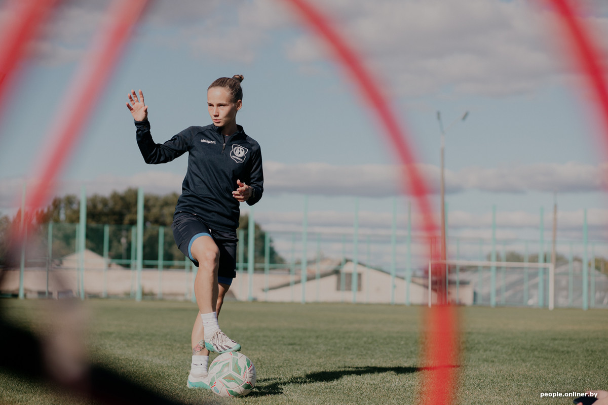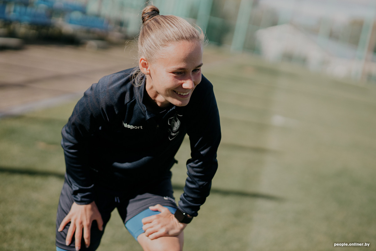 Мы прогуливаемся в Ариной после тренировки. Из окна кафе напротив стадиона раздается: «Девушка, а это не вы профессиональная футболистка?» Арина смеется и говорит, что это ее одноклубницы. Но вообще, новоиспеченное лицо белорусского женского футбола в городе в последние пару месяцев узнают частенько. Как на это реагировать, девушка пока не поняла. Иногда отшучивается, что люди обознались и вообще она баскетболистка. Баскетболистка с ростом 155 сантиметров, все верно.