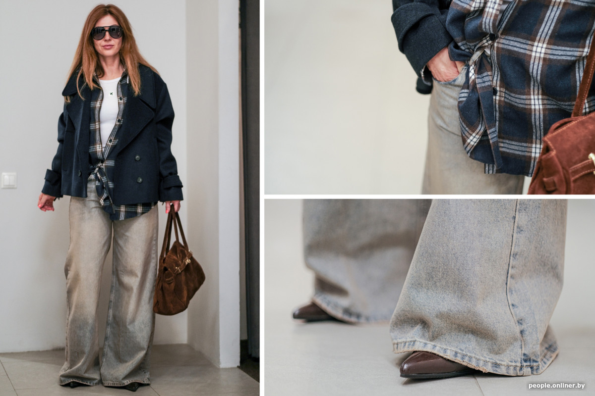 — Клетка хорошо сочетается с джинсами. Получается такой кантри-стиль. Рубашку осенью носим поверх белой майки и утепляем верхним слоем.