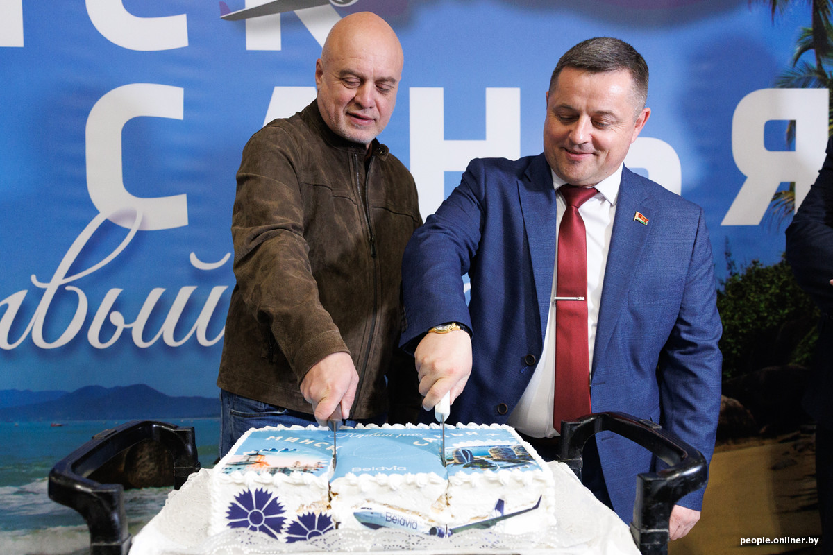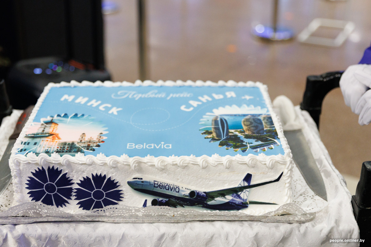 Первый рейс на китайский Хайнань торжественно запустили сегодня ночью. Представители «Белавиа» и аэропорта разрезали красную ленту и угостили тортом пассажиров, которые решили улететь одними из первых на Хайнань.