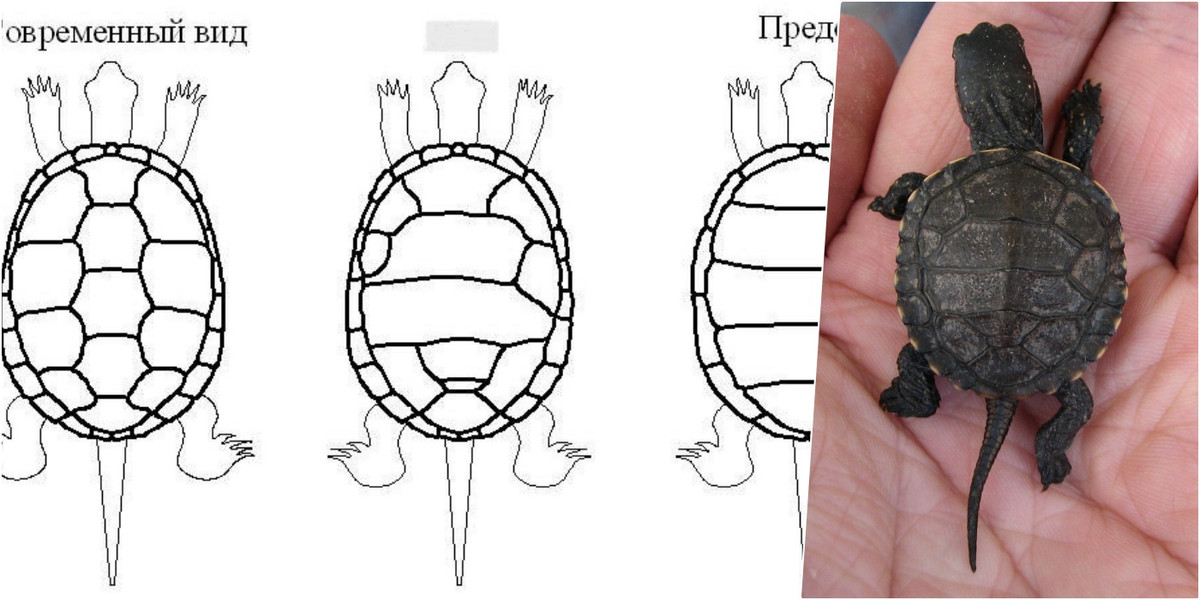 — Однажды на полянке я увидел черепашонка, который только выбрался из гнездовой камеры. В глаза сразу бросилось необычное расположение щитков на панцире: реберные объединены с позвоночным в один опоясывающий щиток. Позже я разглядел, что на трех конечностях недостает по одному пальцу. По моей гипотезе, это наглядный пример реверсии — возврата. Так в биологии называется явление, при котором у организма появляются признаки далеких предков. Возможно, этот черепашонок отвечает на вопрос, какими были самые начальные формы панциря и конечностей у черепах.