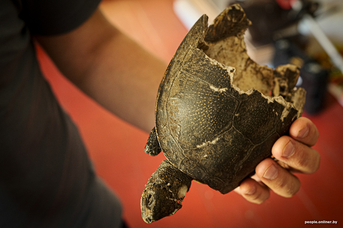 — Местные давно знают про черепах. Ничего необычного в них не видели: считали, что пользы от них никакой, как и вреда. В лучшем случае черепаху просто показывали детям, а потом отпускали в воду. В худшем… Мне известны случаи, когда на Полесье черепах клали в корыто, чтобы вода, которую пьет корова, не застаивалась. Ну а некоторые мужики делали из черепах пепельницы: рептилию бросали на муравейник, а через какое-то время возвращались и забирали пустой панцирь. Ощущения, что рядом живет животное, которое нуждается в защите, у людей не было.