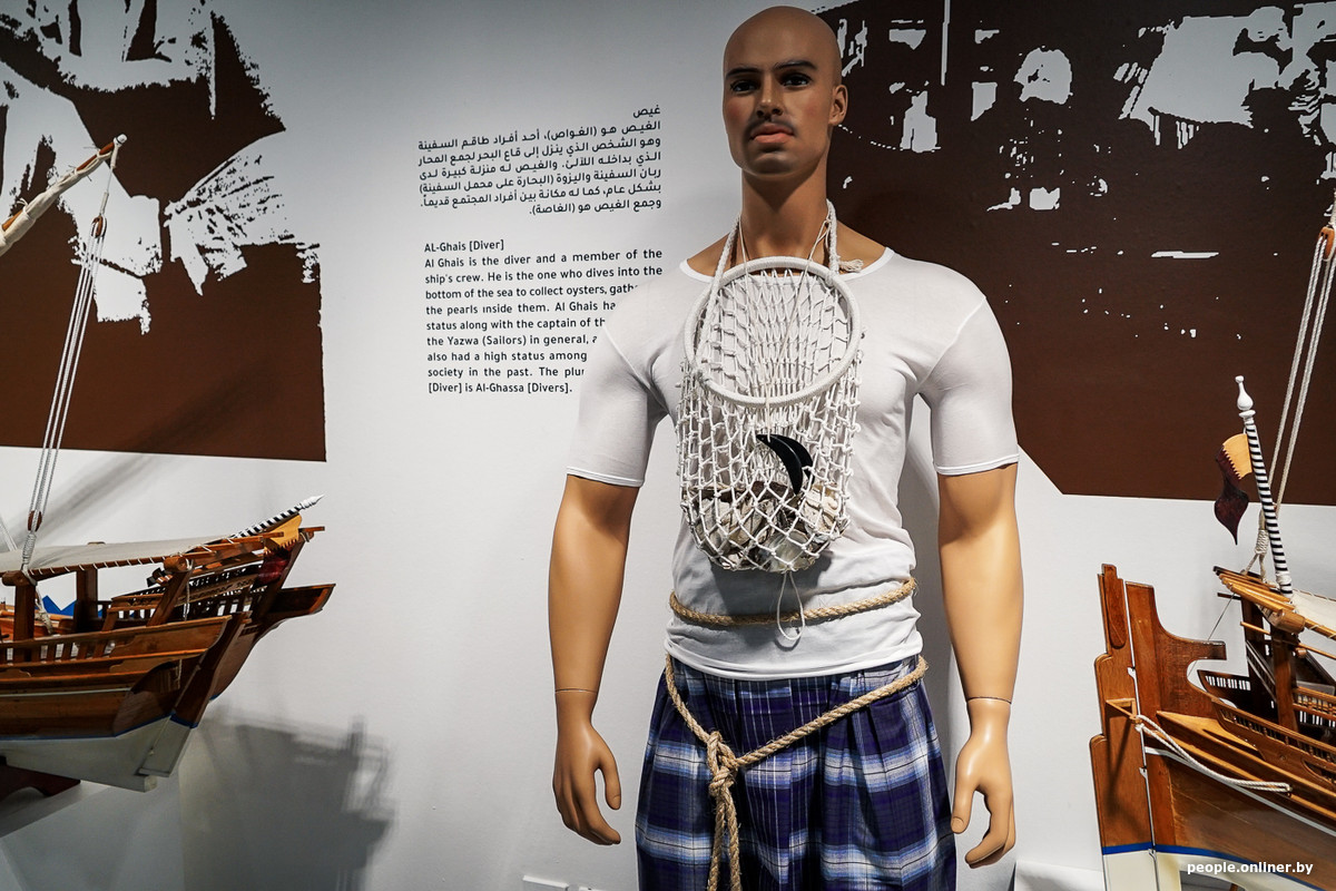 В Культурной деревне Катара даже есть целый музей, посвященный лодкам доу, а заодно и жемчужному промыслу в целом. Там можно увидеть, что ловцы жемчуга пользовались только максимально простыми инструментами, причем набор не менялся веками.