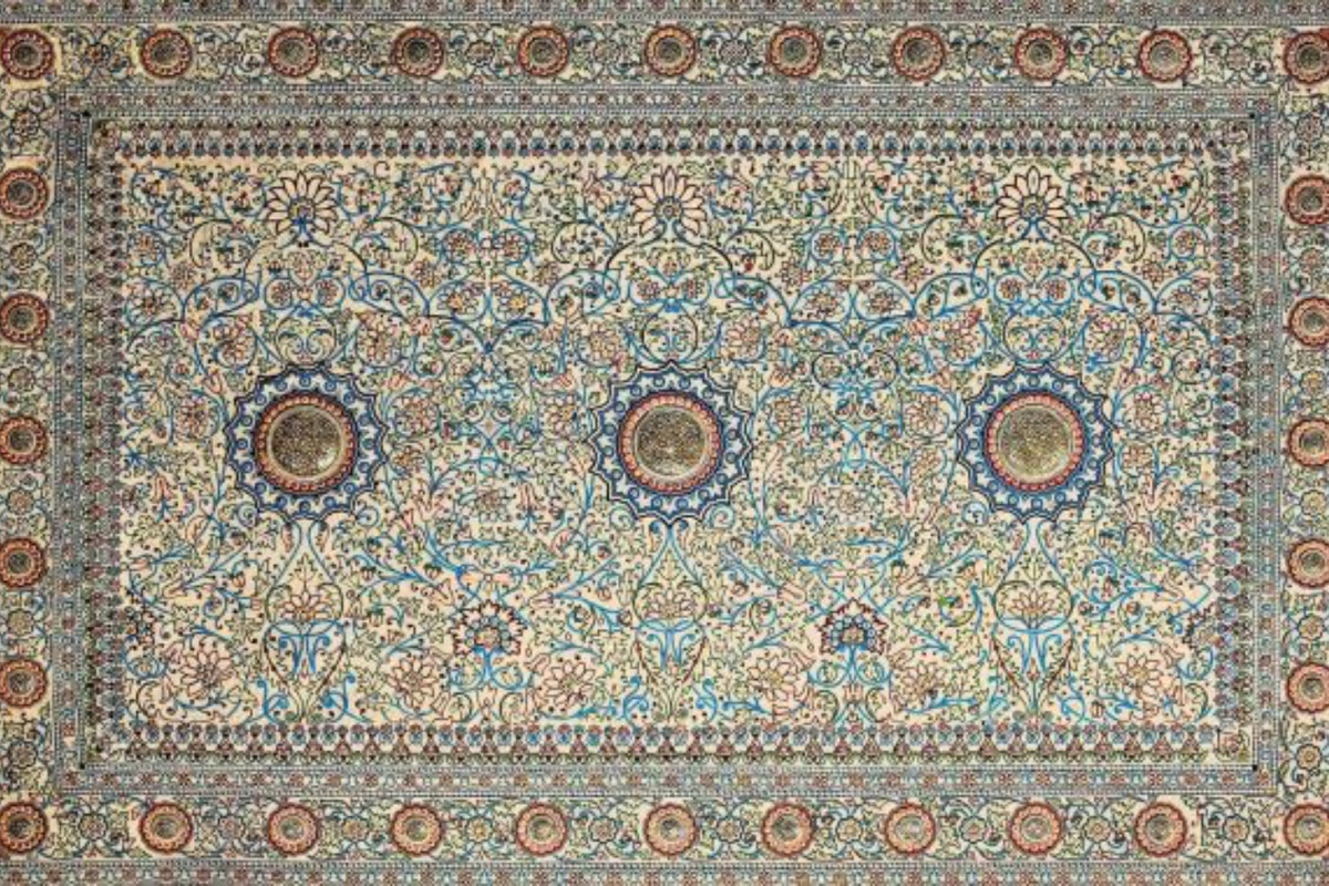 Основа для ковра была создана из оленьей шкуры и шелковых нитей, следующий же слой — это более миллиона жемчужин, добытых как раз здесь, в водах Персидского залива. Узор образован тысячами рубинов, изумрудов и сапфиров. Не обошлось и без бриллиантов — их здесь 2,5 тыс. Каждый закреплен в специальной золотой или серебряной розетке.