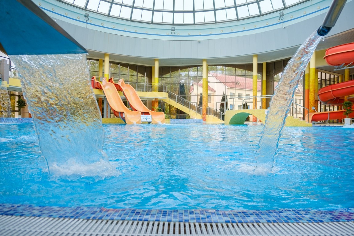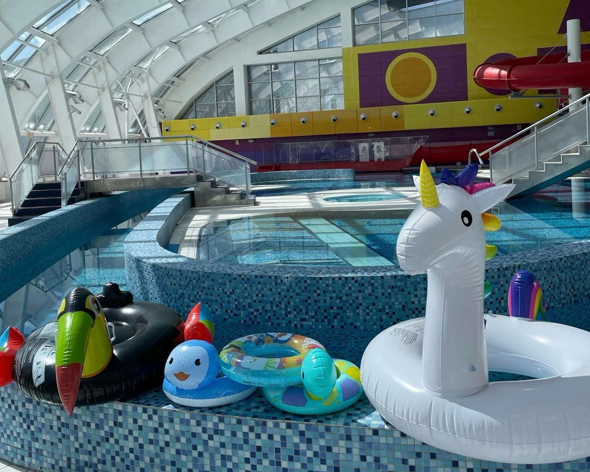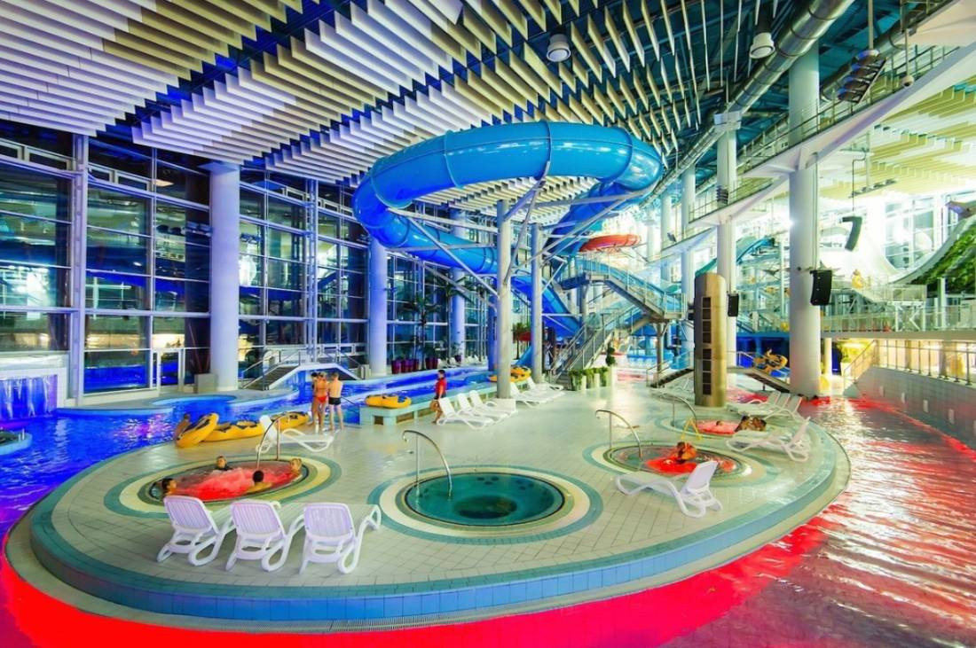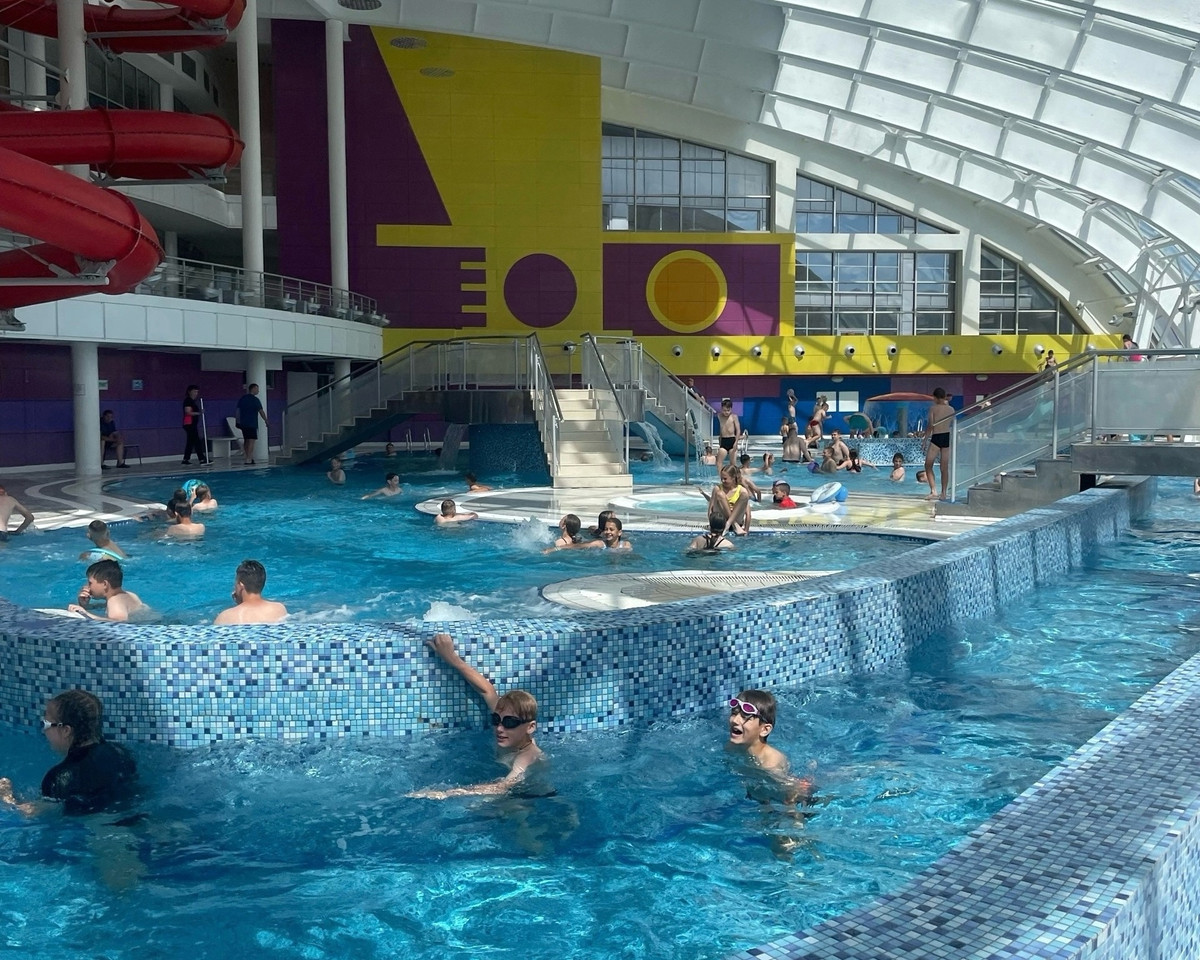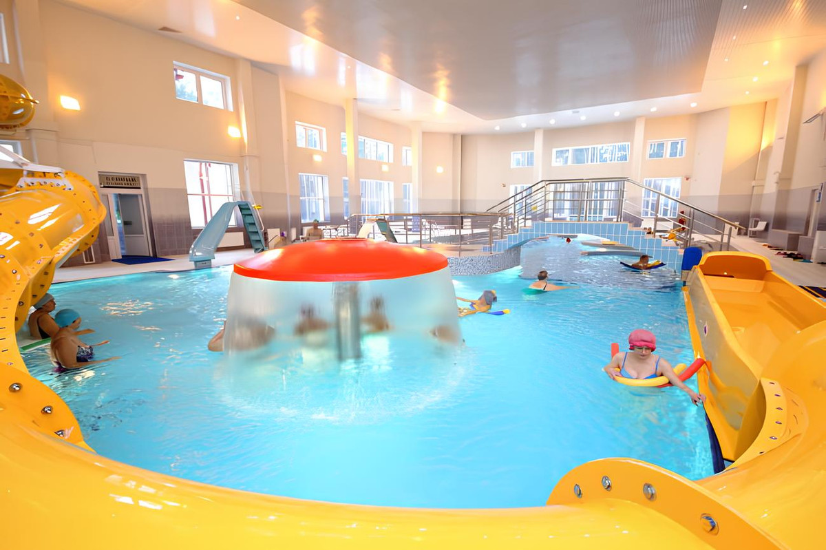 Для детей — самое то. Много отзывов от родителей: детям здесь весело, безопасно, есть две горки, неглубокая чаша с теплой водой, зона для малышей и большая горка для ребят постарше.