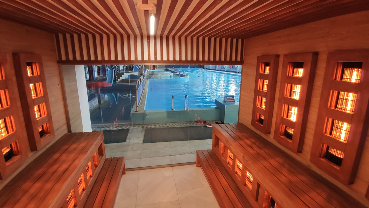 Термальная зона и сауны — на уровне. Инфракрасные комнаты, бани с разной температурой, водопад для спины, гидромассажные пушки — все это помогает расслабиться.