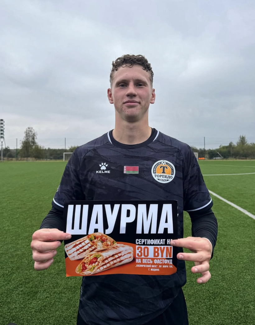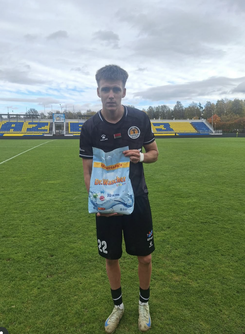 Обладателем необычного приза стал Захар Баранок. «Центральный защитник показал надежную игру, обеспечил „ноль“ сзади и получил 9 килограмм стирального порошка от нашего партнера», — указано в подписи.