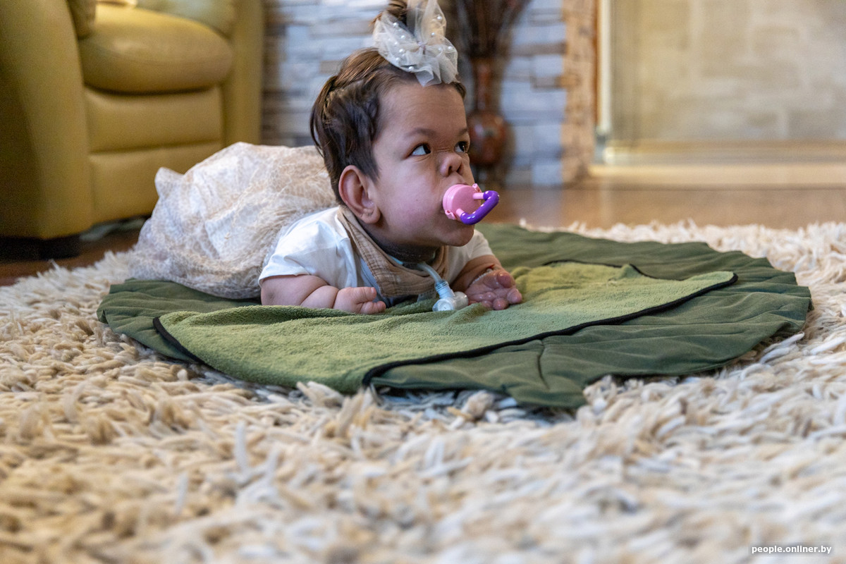 Когда девочку только забрали домой, она не могла самостоятельно дышать даже минуту. Стоило отключить ребенка от аппарата ИВЛ, как Оля сразу же начинала синеть. Елена объясняет, что у дочки с рождения не было дыхательного рефлекса. Поэтому то, что сейчас Оля может хотя бы немного дышать самостоятельно, в семье называют чудом.