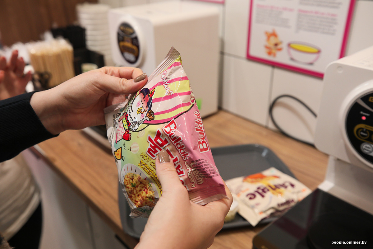 В белорусской раменной самая продаваемая лапша тоже от этого бренда. Главный бестселлер — вкус «Карбонара». Еще в списке лидеров сырная, сыр-курица и острая курица. Но, как рассказали нам сотрудники заведения, последний вариант белорусы обычно не берут — не выдерживают: