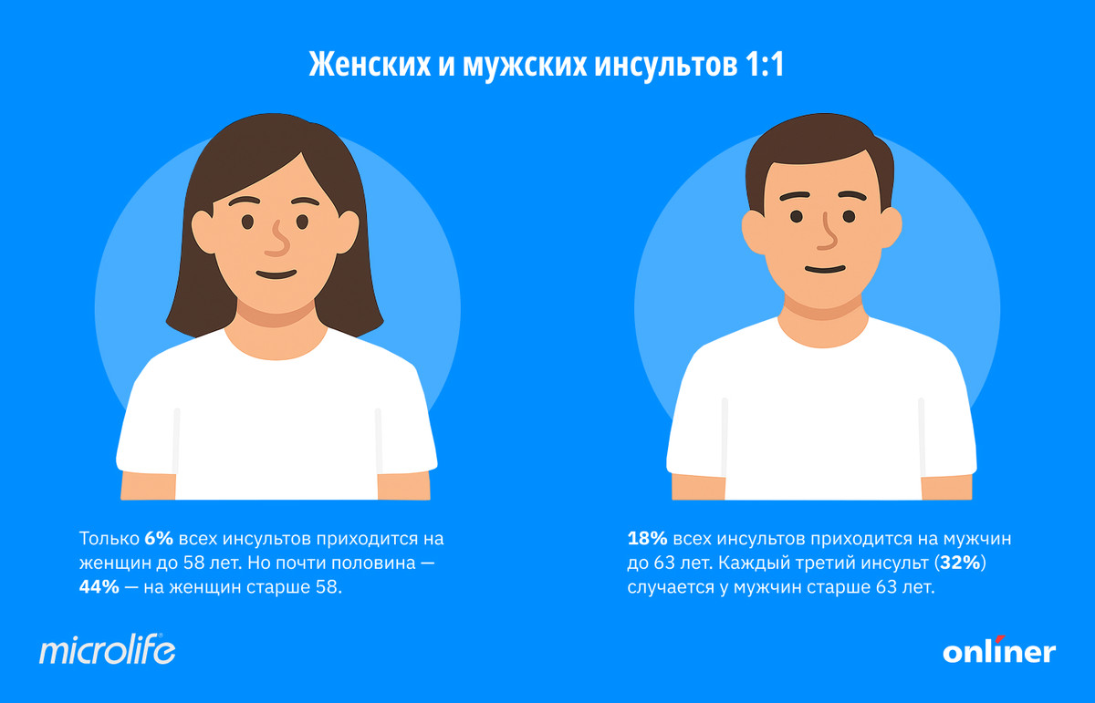 Инсульт занимает второе место среди самых распространенных причин смерти. Опережает его в этом печальном списке только ишемическая болезнь сердца. При этом заподозрить его приближение нельзя ни за месяц, ни за неделю, ни даже за час. Удар всегда происходит внезапно, а после его наступления нужно действовать мгновенно — счет идет на часы. Вместе с Microlife поговорили со специалистом о том, чем отличаются инсульты у мужчин и женщин, что делать, если с ним столкнулся кто-то из близких, и главное — как минимизировать риски.