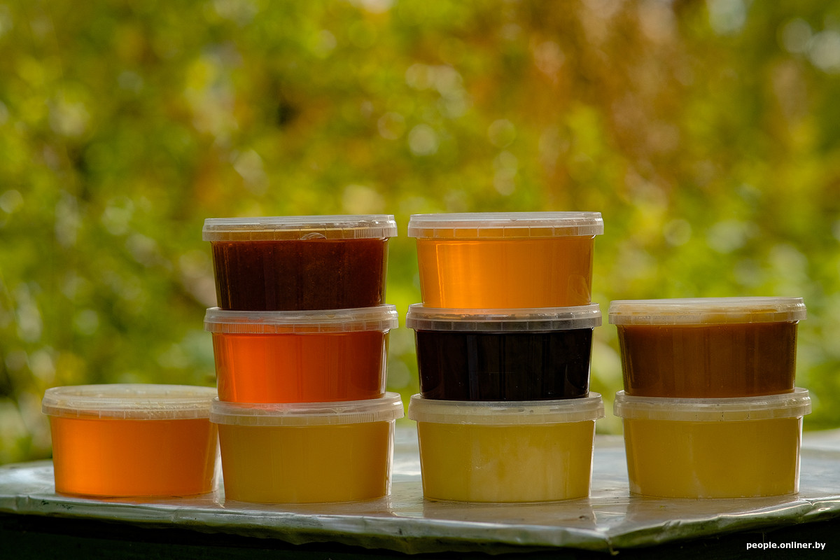 — Весенний полифлорный мед — тут верба, клен, черника, одуванчики, садовые деревья и кустарники. Лесной мед — двух видов: традиционный — малина с крушиной, а второй — с преобладанием крушины, он и по цвету, и по вкусу ярче. Это мой любимый мед, и многим людям он нравится. В этом году в Беларуси липового меда немного, но у меня есть. Гречишный, рапсовый, хоть специально я его и не собираю. Еще есть немного кипрея, золотарника, лугового меда. В какие-то годы пчелам удается собрать чабрец.