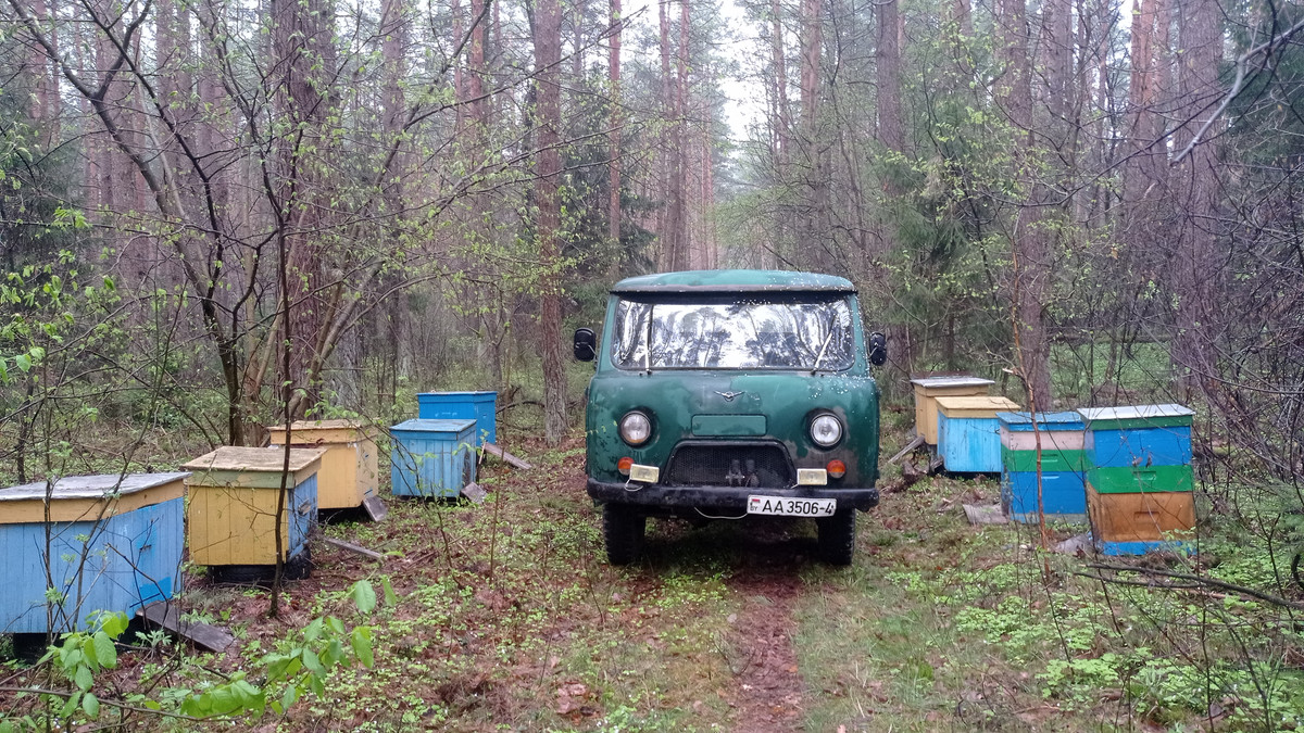 На небольшие расстояния пчеловод перевозит пчел на своем уазике — загружает по 10—12 ульев и оставляет в разных местах по всему лесу.