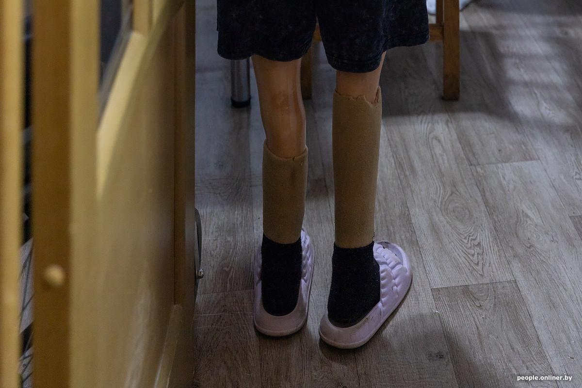 С чем Женя управляется легко, так это с протезами на ногах. Заметно, что они тяжеловаты и, конечно, не сгибаются, как настоящие суставы. Но все же Женя может встать, пройтись или даже покататься на велосипеде. Галина с улыбкой рассказывает, что недавно выбросила ролики: во-первых, дочери они стали маленькими, а во-вторых, она слишком активно на них гоняла.