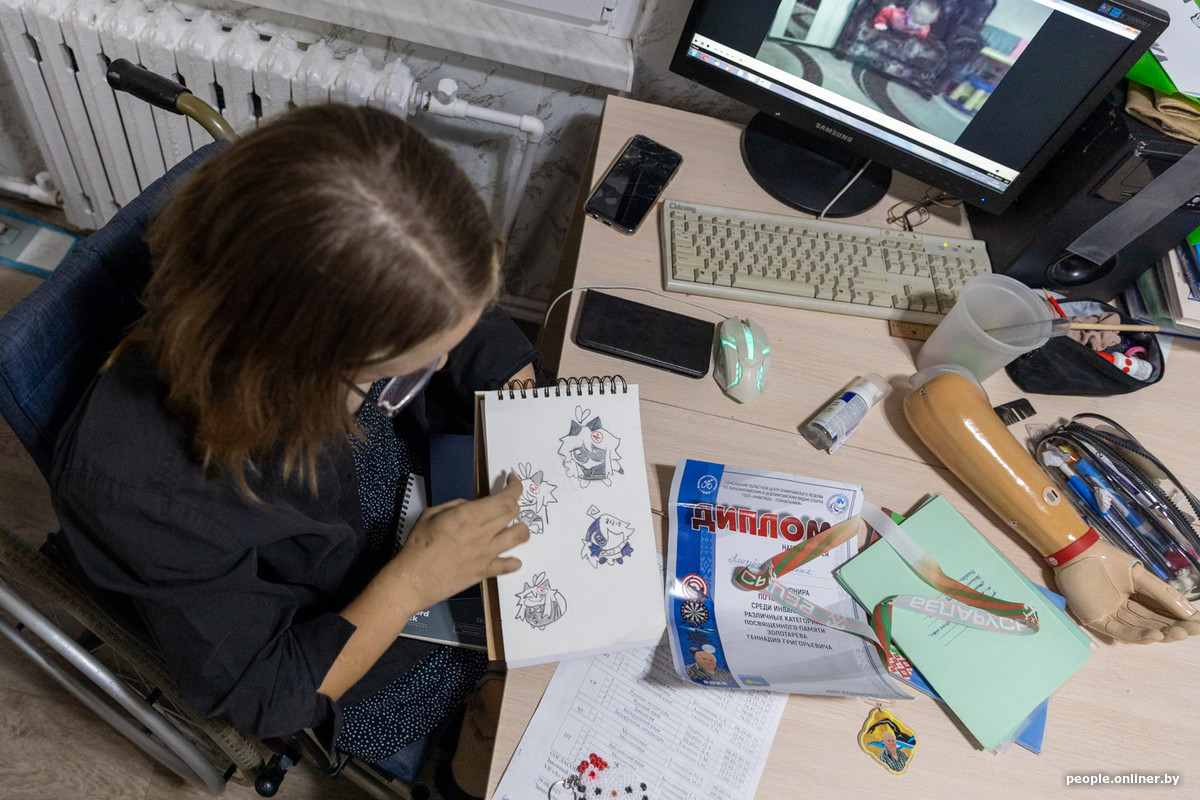 В прошлом году Женя начала заниматься плаванием. Во многом к этому подтолкнуло знакомство с белорусским паралимпийцем Алексеем Талаем. Тогда же девочка шутила, что, как только станет успешной спортсменкой, сделает в родительском доме ремонт, ведь из-за езды на инвалидной коляске успели пострадать стены. Да, протезы есть, да, она умеет управляться с ними, но постоянно передвигаться на них все же не получается.