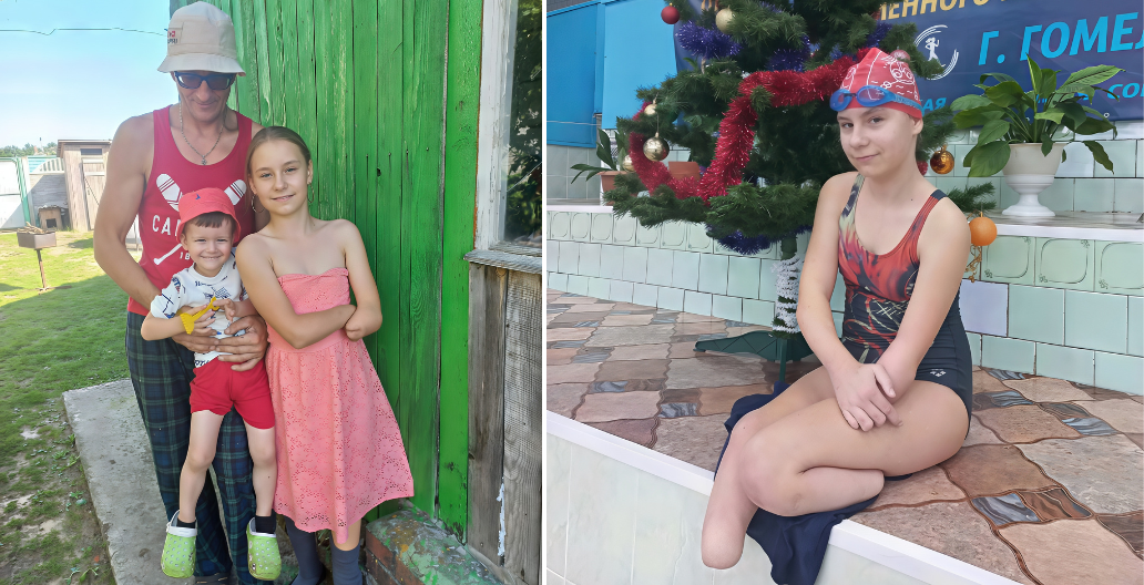 — Когда Жене был годик, мы поехали в минскую больницу, там нам сделали первые протезы. Принесли их, показали, как надевать, и сказали, чтобы мы учили Женю ходить. Приехали домой, две недели учились, и она начала бегать! В полтора года уже ездила на велосипеде, — с гордостью говорит мама.