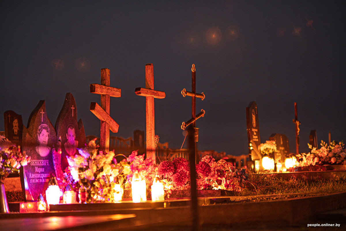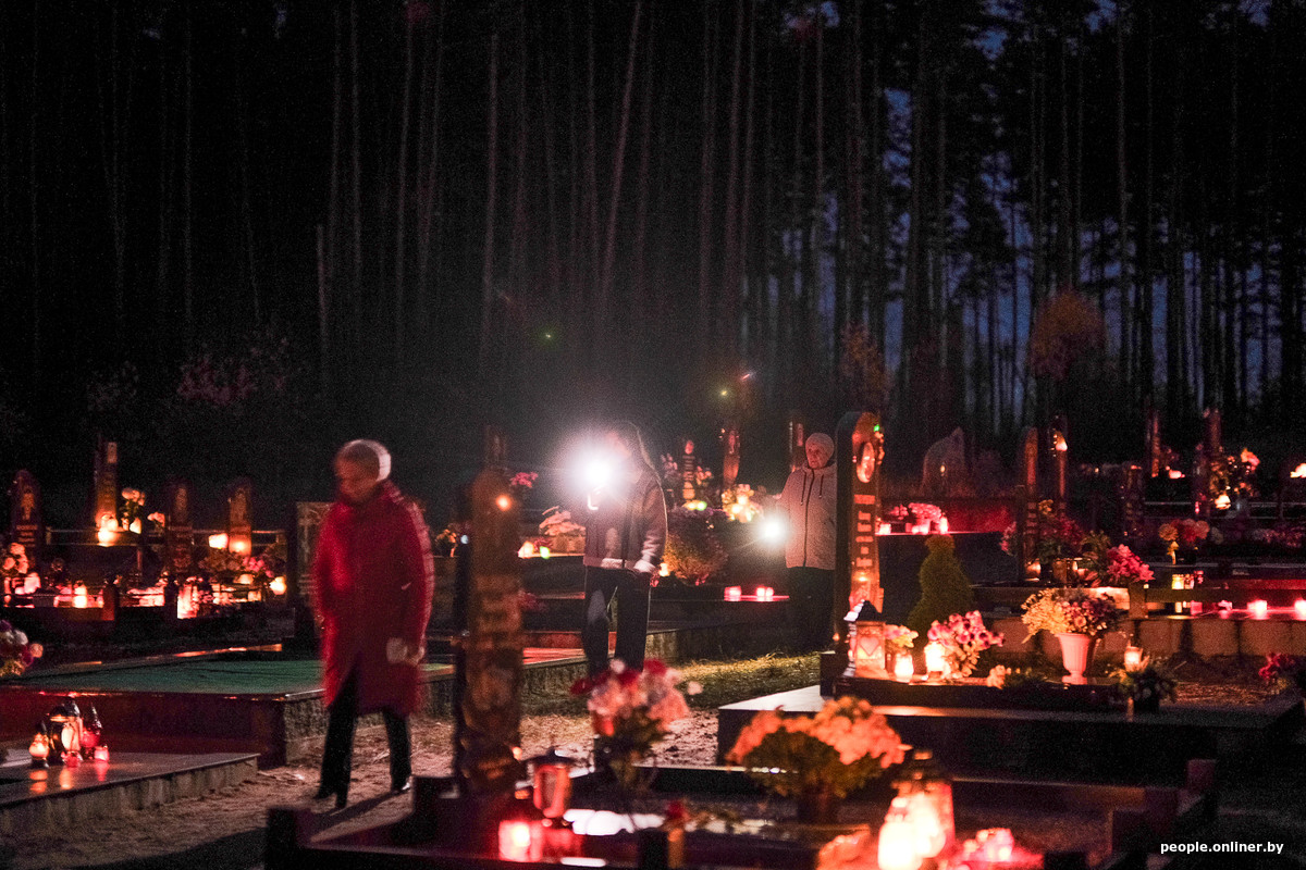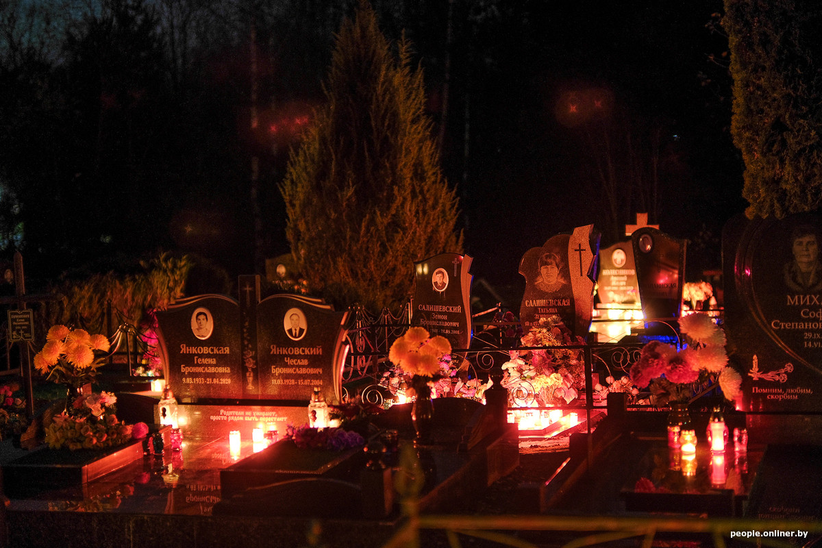 У Івянцы многія пайшлі на могілкі паставіць свечкі і лампадкі менавіта ўвечары. Каб было прасцей, людзі асвятлялі сабе шлях ліхтарыкамі і мабільнымі тэлефонамі.