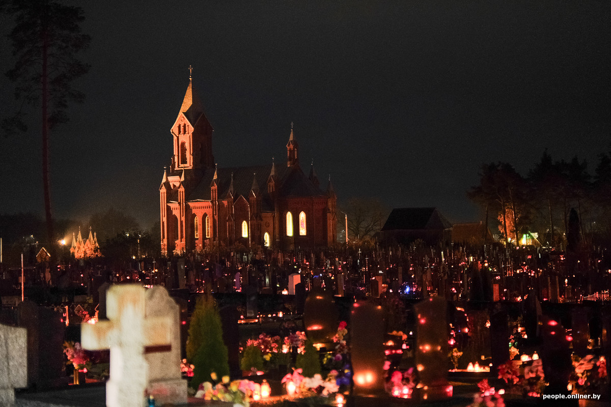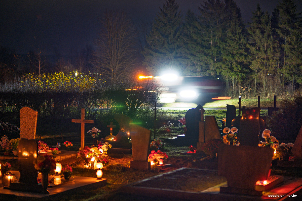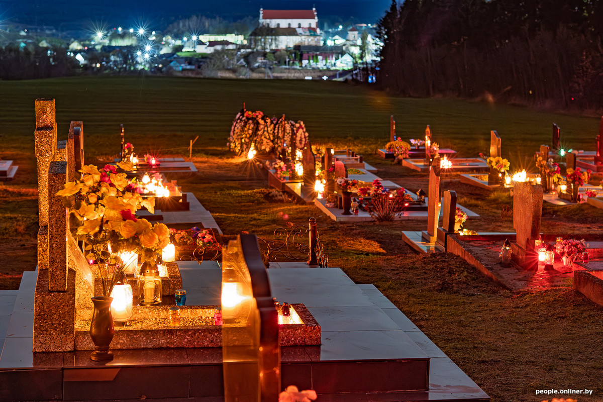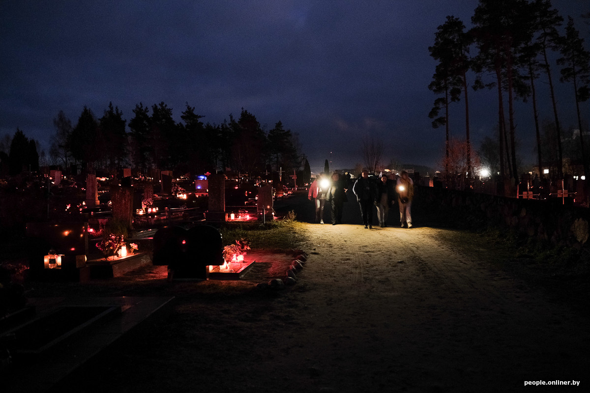 У Івянцы многія пайшлі на могілкі паставіць свечкі і лампадкі менавіта ўвечары. Каб было прасцей, людзі асвятлялі сабе шлях ліхтарыкамі і мабільнымі тэлефонамі.