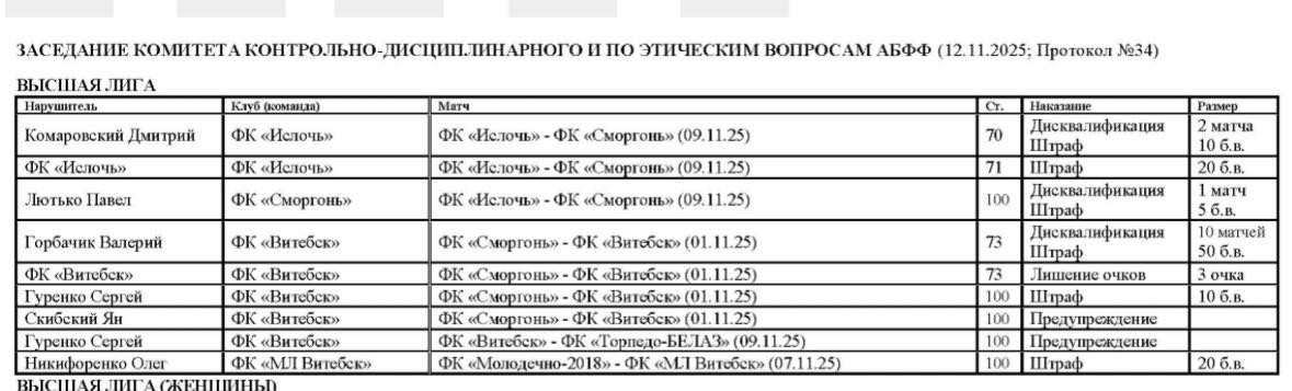 В четверг стало известно, что АБФФ согласно ст. 73 («Расизм и дискриминация») оштрафовала на 50 базовых величин Валерия Горбачика, дисквалифицировала его на 10 матчей и лишила клуб трех очков. Как Onlíner рассказал директор ФК «Сморгонь» Павел Лютько, клуб не был инициатором дисциплинарного процесса и не направлял в федерацию жалобу о привлечении Валерия Горбачика к ответственности. Инцидент, связанный с Горбачиком и Мпомезоком, был отражен в рапорте инспектора матча, и информация стала известна в Контрольно-дисциплинарном комитете по этическим вопросам. Через несколько дней из АБФФ в Сморгонь пришло письмо, в котором клуб попросили предоставить в федерацию письменное объяснение произошедшего от Кристиана Мпомезока.