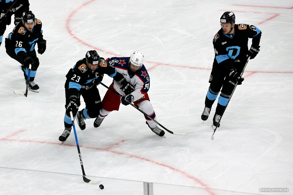 Очередной домашний матч в рамках регулярного чемпионата КХЛ закончился для минского «Динамо» крупной победой над московским ЦСКА — 5:2. Первый период завершился безголевой ничьей, а вот во втором и третьем минчане забросили 3 и 2 шайбы соответственно.
