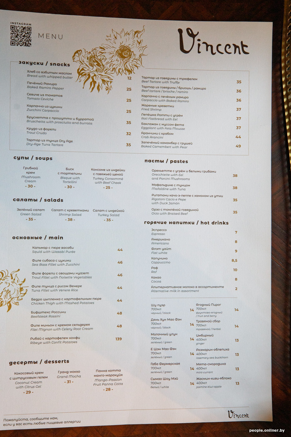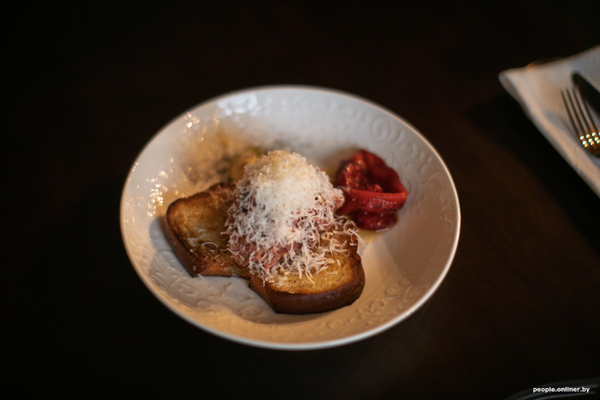 А теперь о еде. Концепция кухни — максимальная приближенность к Франции. И в этом тоже есть отсылка к Ван Гогу — художник много писал именно там. Меню, рассказывает Полина, разрабатывалось совместно с известным белорусским шеф-поваром.