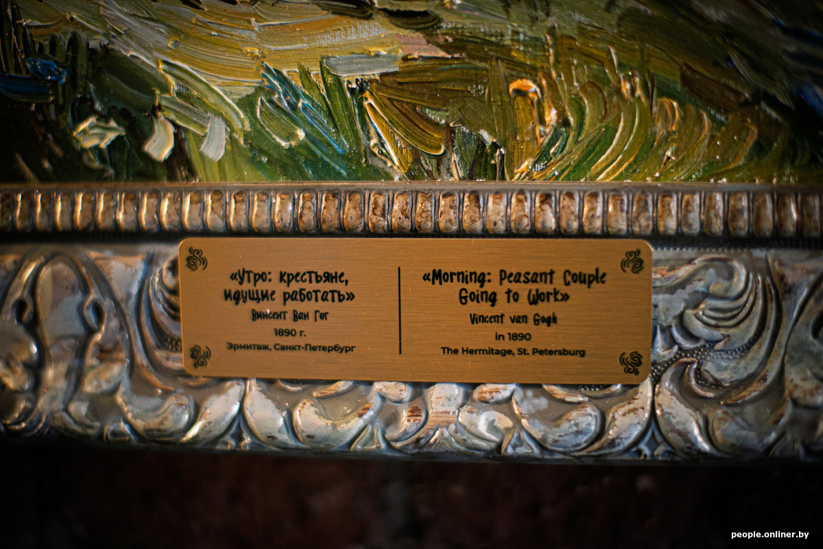 Моя любимая работа — «Морской пейзаж», она у нас наверху — там впечатляющий слой краски. Наверное, когда увидела оригинал в музее Пушкина в Москве, с нее и началось понимание настоящего Ван Гога. Кстати, если посмотреть на картины, то на каждой указано, в каком музее хранится оригинал.