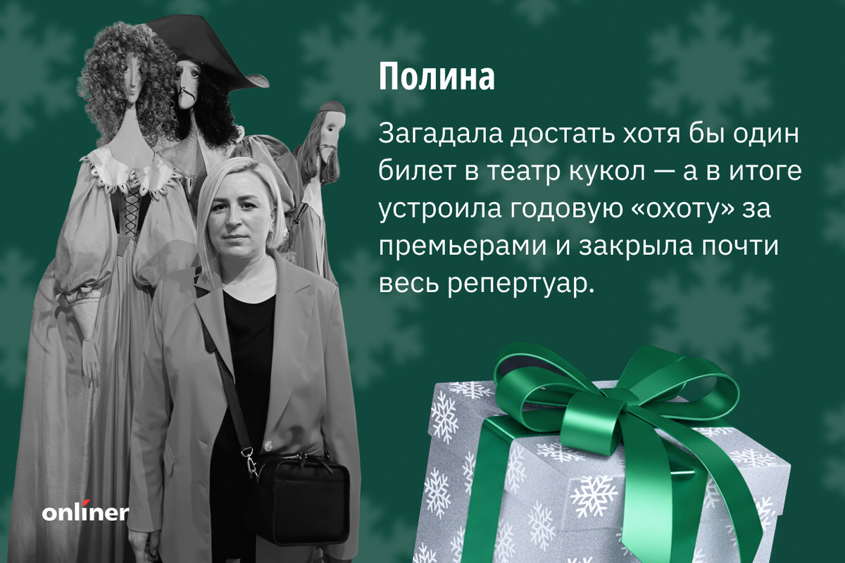 — В декабре каждый день волшебный, — улыбается Полина. — Тогда накануне Нового года подруга вручила мне деньги и призналась, что хотела достать билеты в театр кукол. Но даже у нее — человека, посмотревшего почти весь взрослый репертуар, — это не получилось. Все же слышали о том, как сложно добыть билеты в кукольный? Тогда я торжественно пообещала: подаренные деньги потрачу именно на билеты в театр.