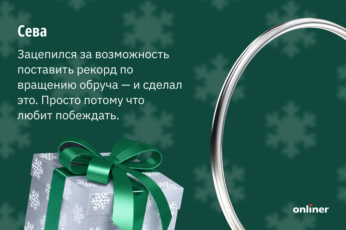 Но в канун прошлого Нового года Сева сам решил погуглить, какие есть рекорды по вращению обруча, с мыслью: а вдруг получится всех переплюнуть?