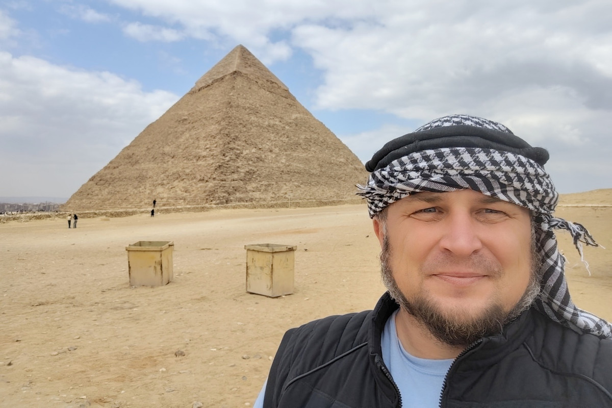 — Помню, рано утром вылетали из Минска. Август, уже прохладно — байка, жилетка. Прилетели в Каир, а там +52. Но здесь на месте было уже +40, так что охладились, — шутит герой.