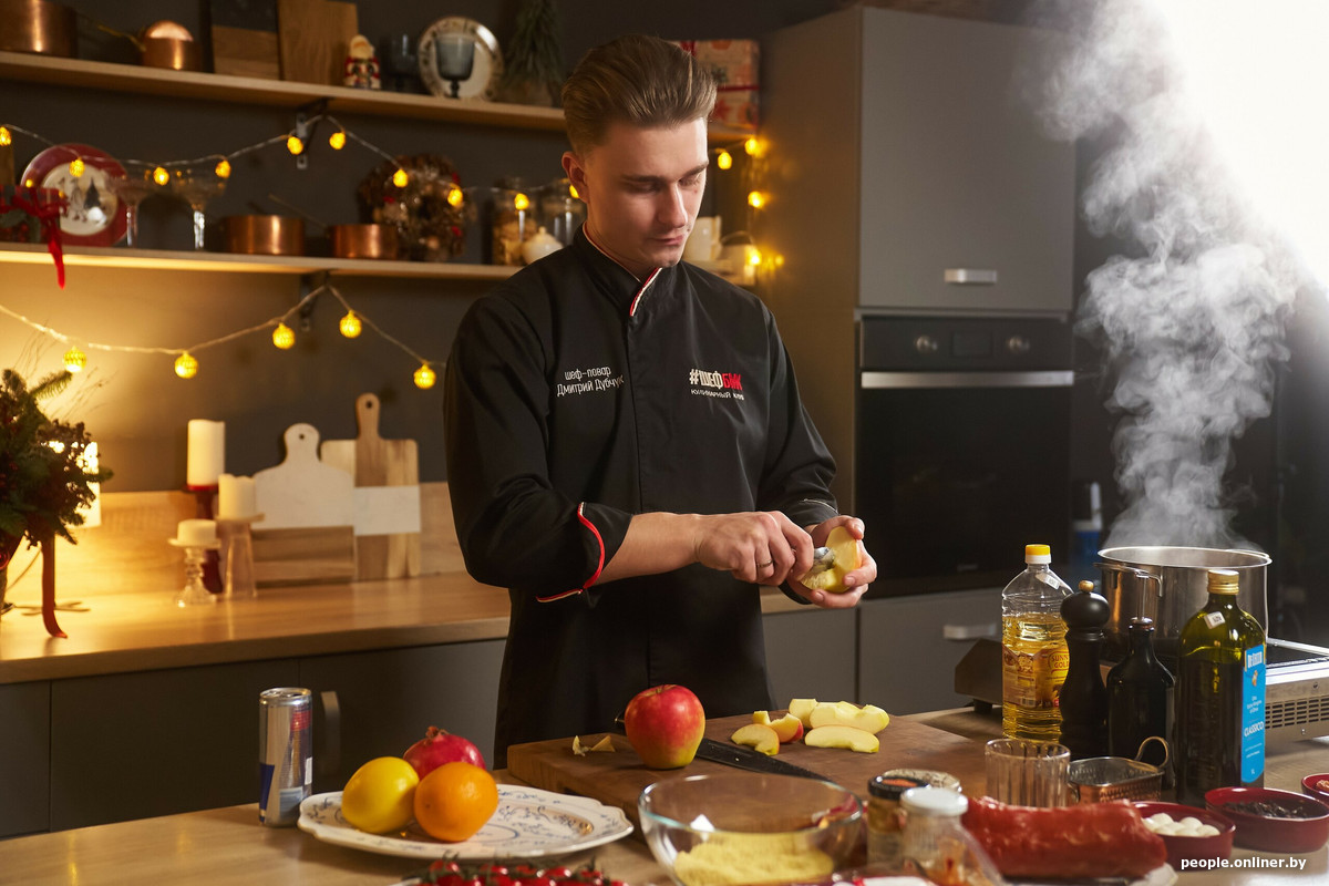Наш бессменный шеф-повар Дмитрий Дубчук, раскладывая на столе продукты, сразу честно предупреждает: приготовить новогодний стол вот прям по-настоящему, тютелька в тютельку за один час у нас сегодня ну никак не получится. Вернее, намешать пару салатов и настрогать блюдо закусок мы-то, конечно, успеем. Но ведь база приготовлений к празднованию Нового года — это всегда приятная суета и заморочки, на которые в обычный день не отважишься. Как часто вы, например, едите на ужин запеченную свиную рульку с жареными в меду и коньяке яблоками? А говядину в брусничном соусе с кускусом и сухофруктами? Вот то-то и оно.