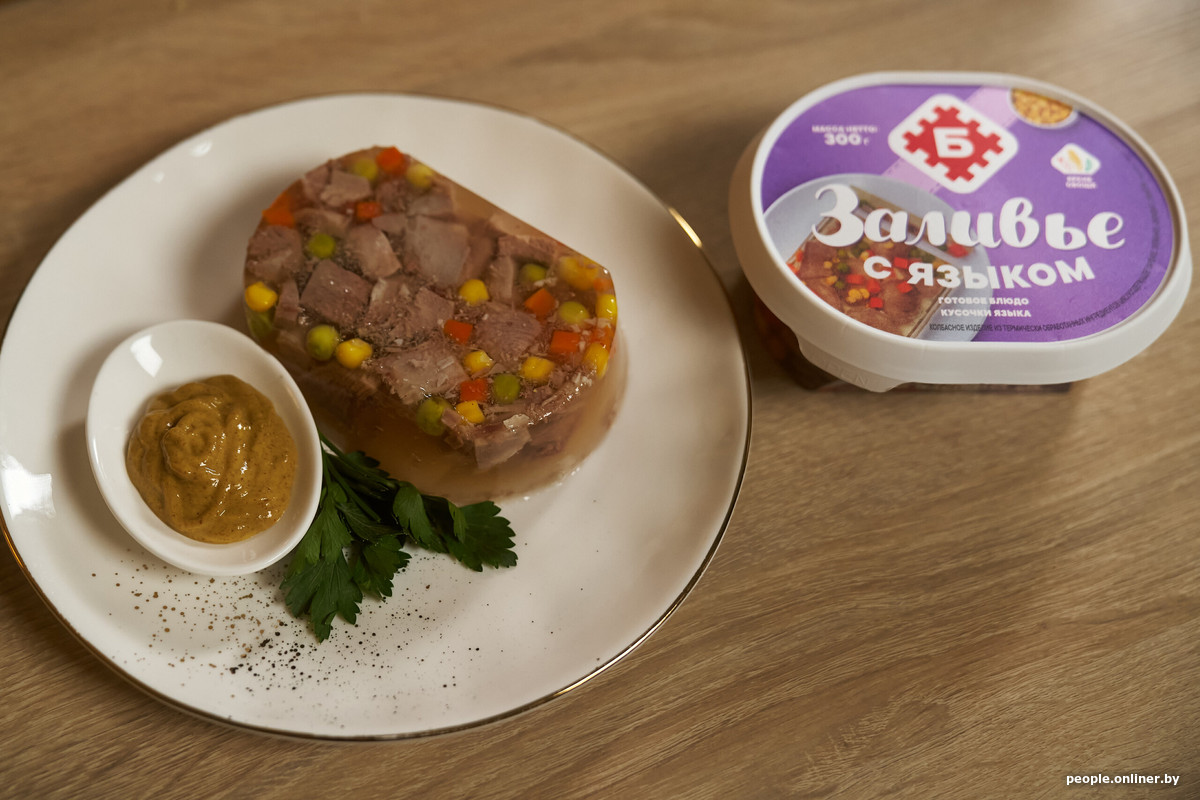 И финальное блюдо перед сервировкой — заливное. Тут вообще никакой науки не нужно, в XXI веке перевернули упаковку — и готово. Разве что может пригодиться небольшой лайфхак: опустите ненадолго дно в горячую воду, чтобы аккуратно отошло.
