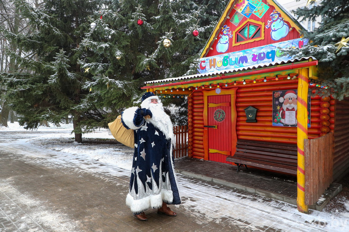 Домик Деда Мороза в минском парке Горького работает до 7 января. Формат здесь особенный: это не спектакль и не большая программа, а именно личное поздравление. Можно выбрать индивидуальный визит (до 15 минут, не больше трех детей) или групповую встречу (до 30 детей). В обоих случаях Дед Мороз общается с детьми, слушает стихи, вручает подарки — свой или заранее переданный родителями.