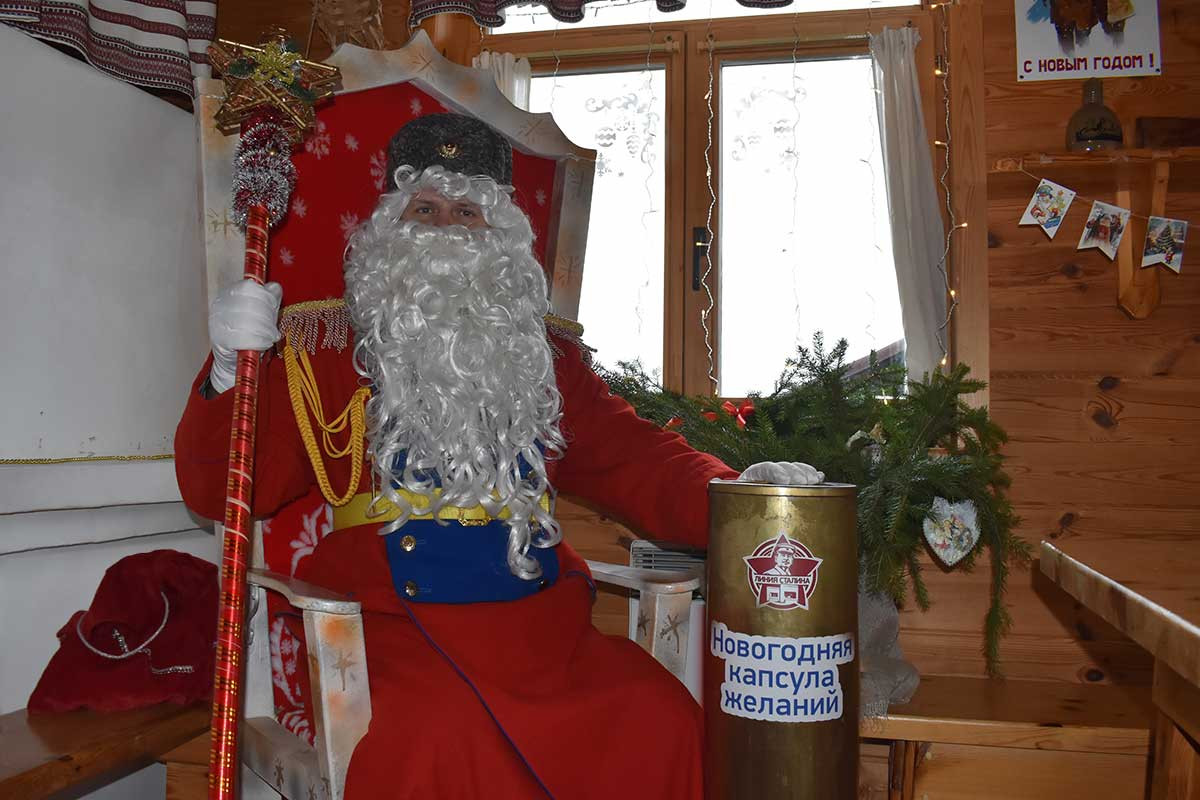 Финальная точка — штаб Деда Мороза. Здесь можно будет пообщаться с ним лично, прочитать стихотворение, сделать фото и получить короткое напутствие. В штабе есть и «капсула желаний» — артиллерийская гильза, куда предложат опустить записку с мечтой на будущий год.
