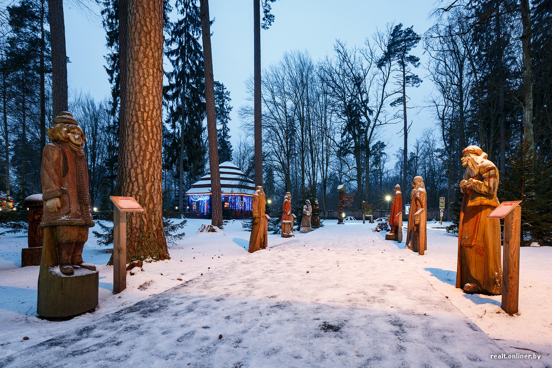 В нацпарке «Припятский» гостей встречает не классический Дед Мороз, а Зюзя — персонаж белорусской мифологии, хранитель зимы и холода. Его поместье работает до 11 января, и это одна из самых необычных новогодних локаций в стране: здесь праздник завязан не только на анимации, но и на природе Полесья.