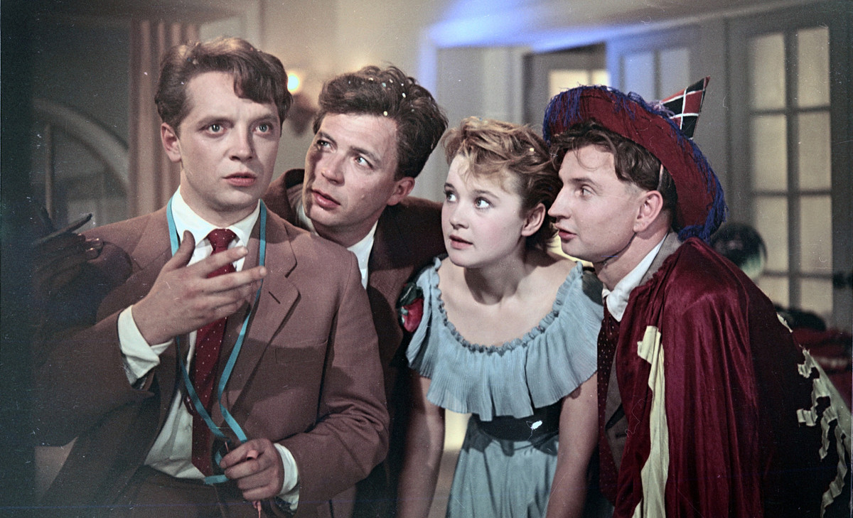 Легкая и собранная, «Карнавальная ночь» быстро задает тон и почти не сбивается с ритма. В Доме культуры готовят новогодний вечер, но появление нового директора Огурцова превращает репетиции в борьбу за право шутить, петь и радоваться без инструкции сверху. Сюжет развивается через номера, рабочие споры и мелкие хитрости, знакомые любому коллективу. Фильм разорвал кинопрокат в самом конце 1956 года и с тех пор работает как точная настройка перед праздником: без пафоса, с юмором и ясным ощущением времени.