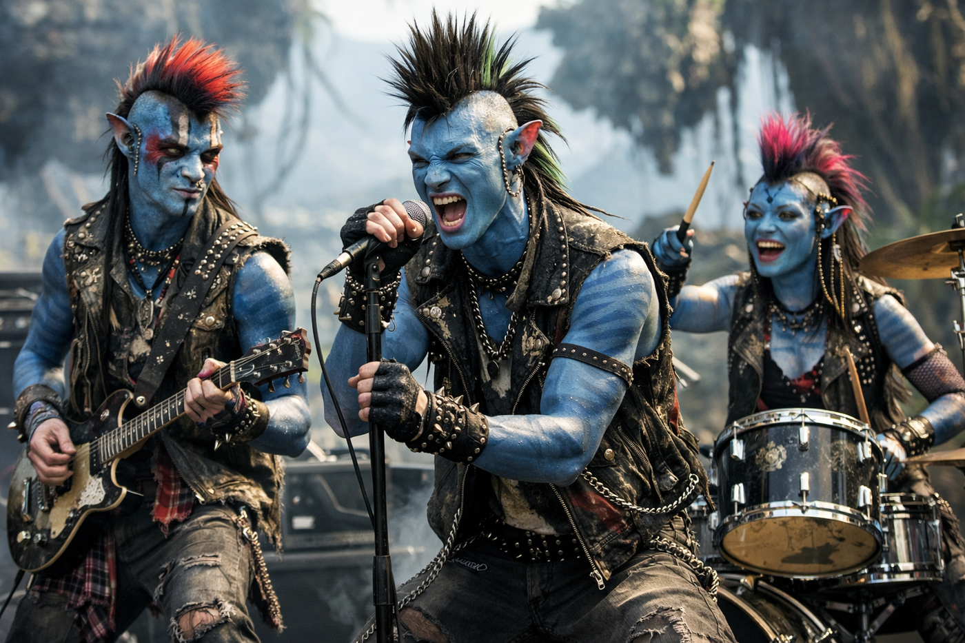 Выход очередной серии «Аватара» — это реальность, от которой не скрыться. Мир гудит и обсуждает премьеру. Даже в нашем топе сегодня будет тематическая сценка. Мы попросили нашего ИИ-консультанта смоделировать, как выглядел бы шоу-бизнес на планете Пандора, если бы власть там захватили панки.