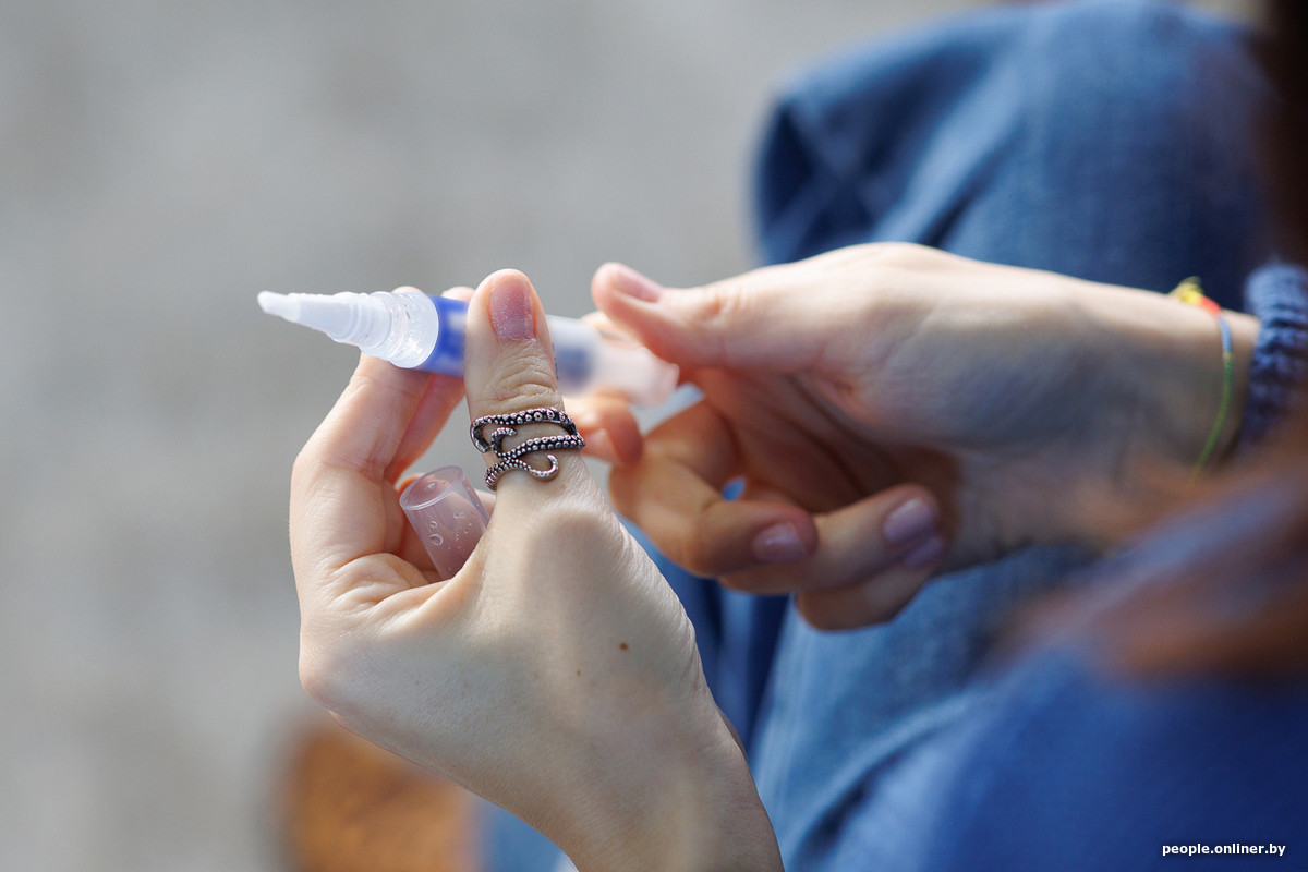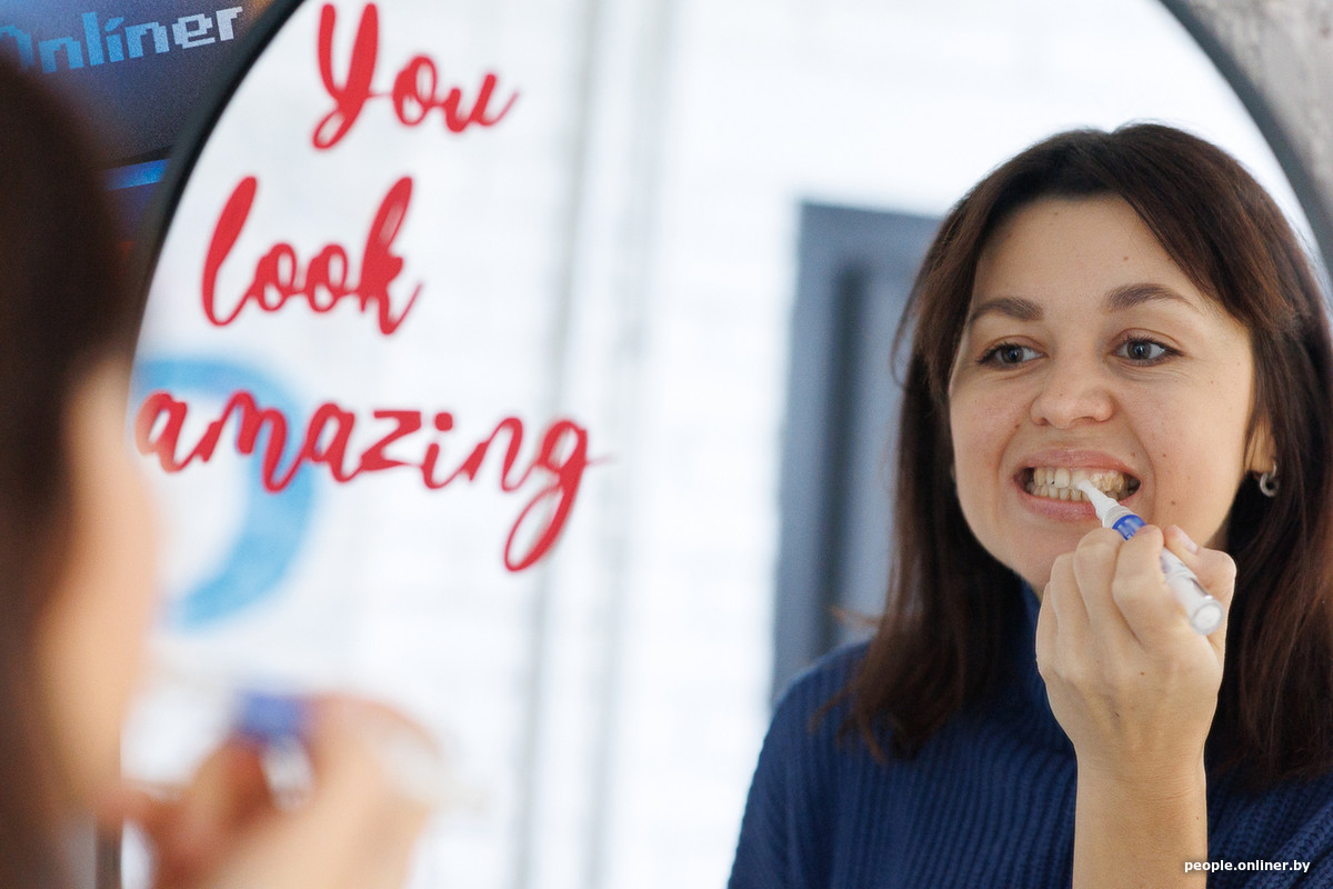 — В этом году я решила привести зубы в порядок, серьезно занялась этим, ходила к стоматологу. В итоге остался только этап, когда можно отбеливать. И тут я наткнулась на пост: Onlíner ищет добровольцев для эксперимента. По-моему, это судьба! — смеется Надежда. — Раньше я думала, что мне нужна капа, которую делают анатомически именно под твои зубы в кабинете стоматолога, или другие варианты отбеливания в клинике. Но стоматолог сказал, что для моей эмали агрессивное отбеливание не подходит. А «домашний» вариант с гелем-карандашом — это более мягкая штука. Так я и оказалась здесь.