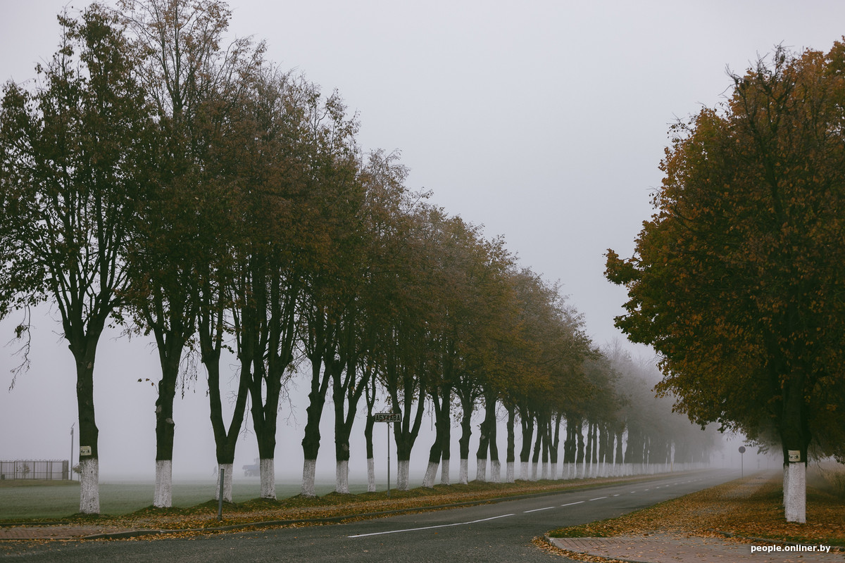 Туманное утро в агрогородке Обухово. Октябрь, Гродненская область.