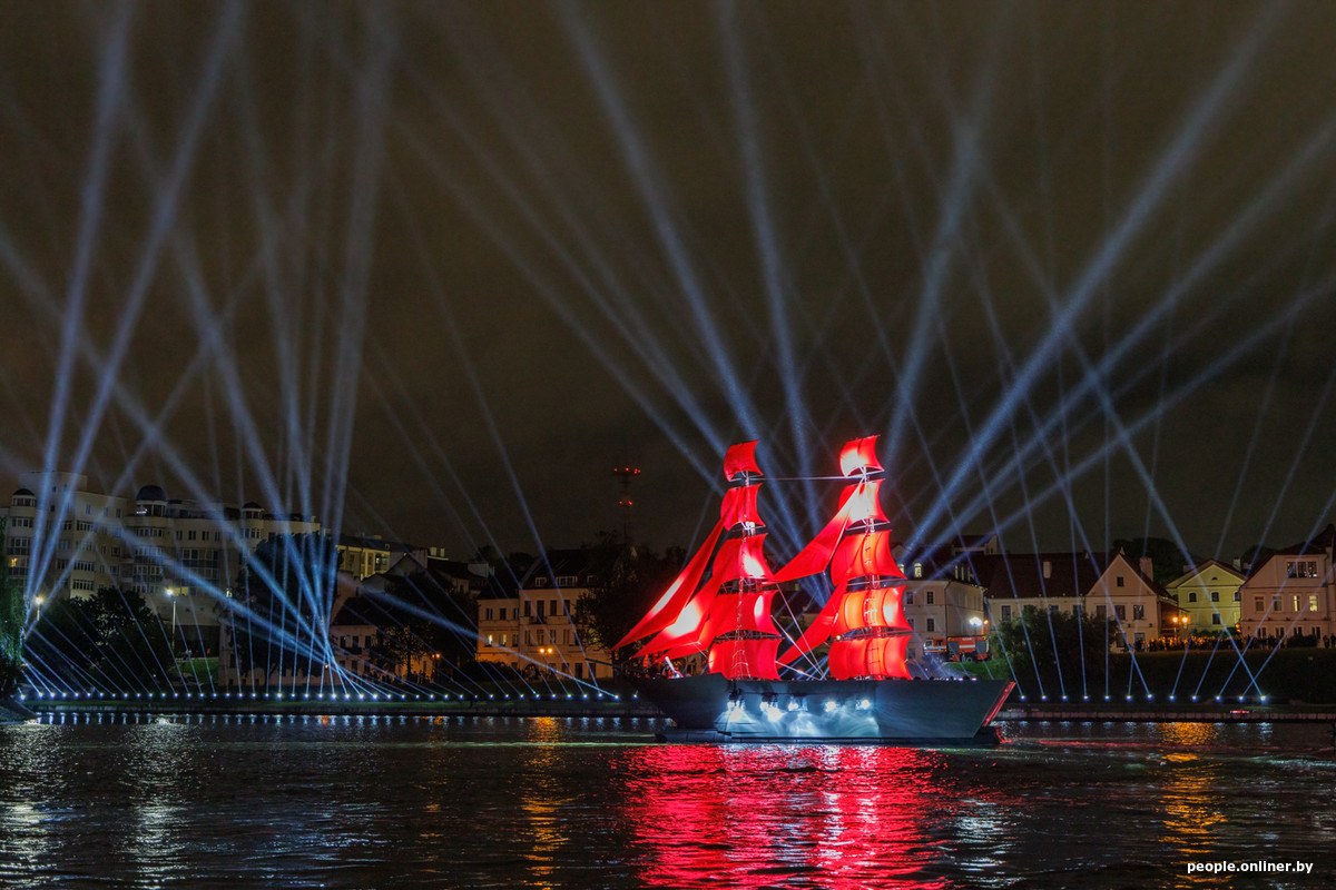 Школьный выпускной в центре столицы: по Свислочи вновь проплыли под алыми парусами. Июнь, Минск.