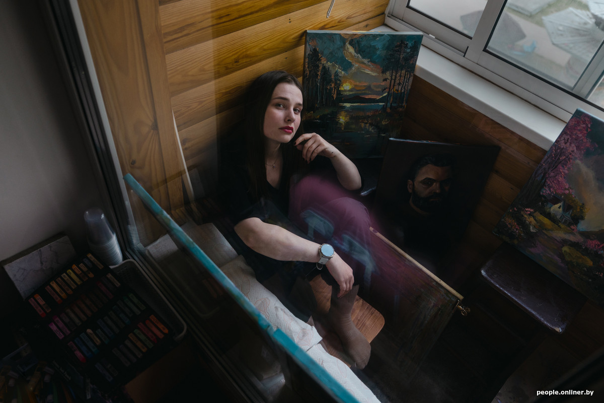 Анастасия Дрема 20 лет живет с эссенциальным тремором — у нее непроизвольно трясутся руки. Несмотря на это, девушка старается реализовать себя как художник. Май, Минск.