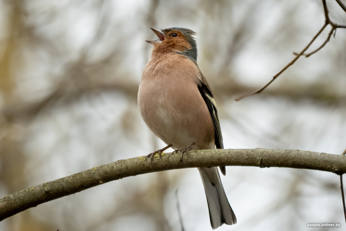 Взволнованный зяблик что-то активно рассказывает сородичам. Март, Минский район.
