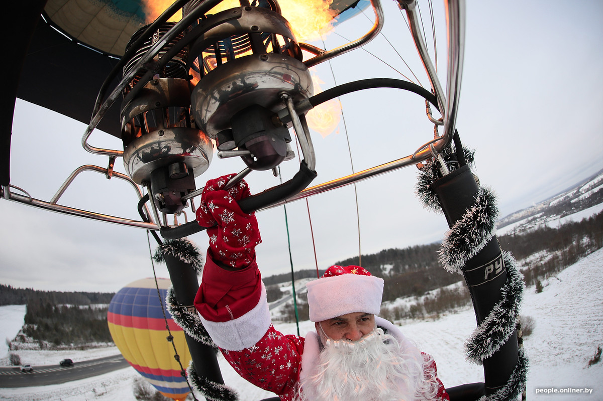 Под Минском запустили катания на воздушном шаре с Дедом Морозом. Декабрь, Минский район.