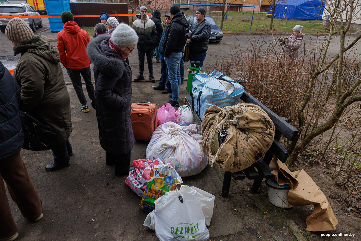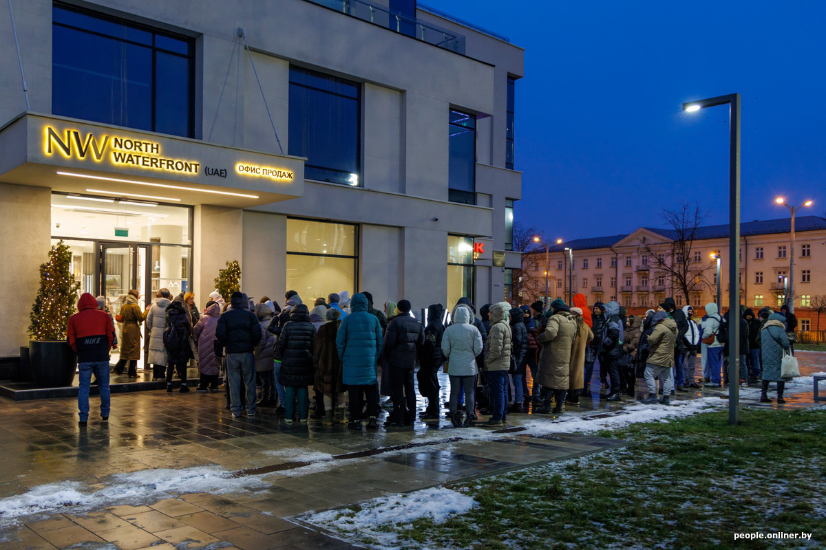 Очередь из желающих купить квартиры в жилом массиве «Северный берег». Январь, Минск.