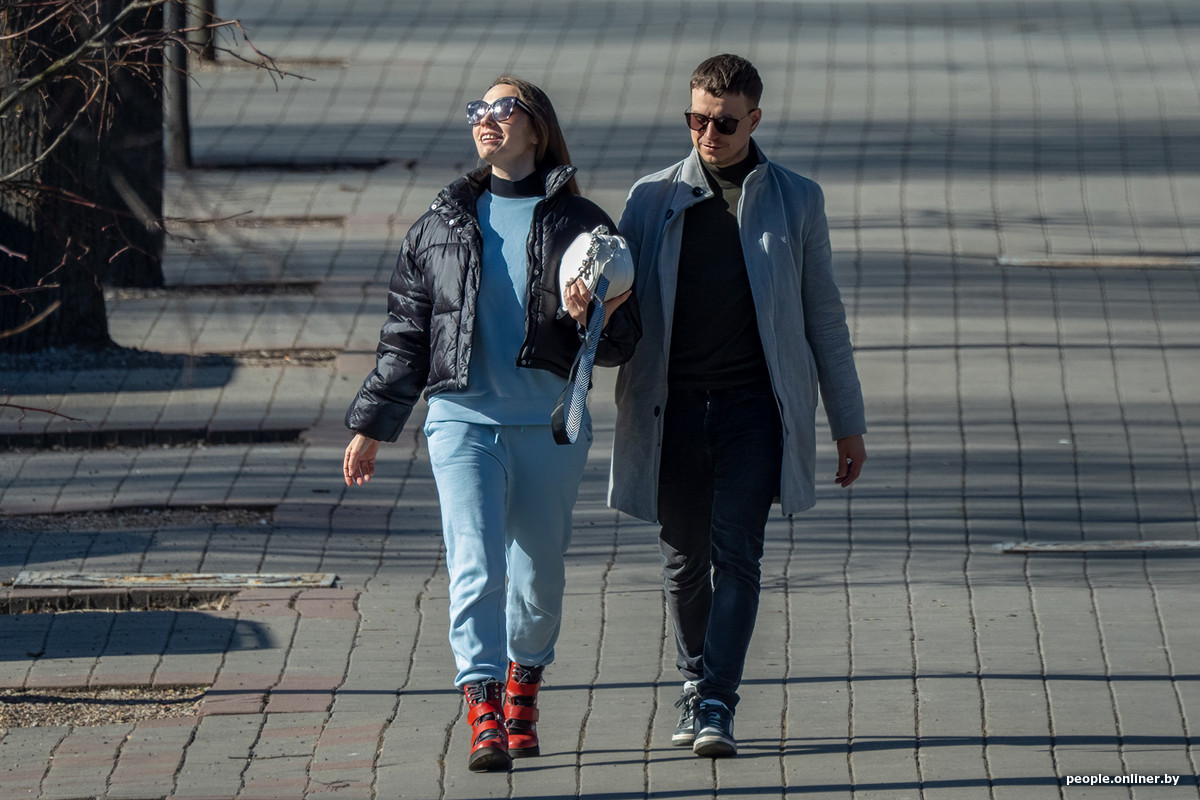 Горожане гуляют по солнечным минским улицам. Март, Минск.