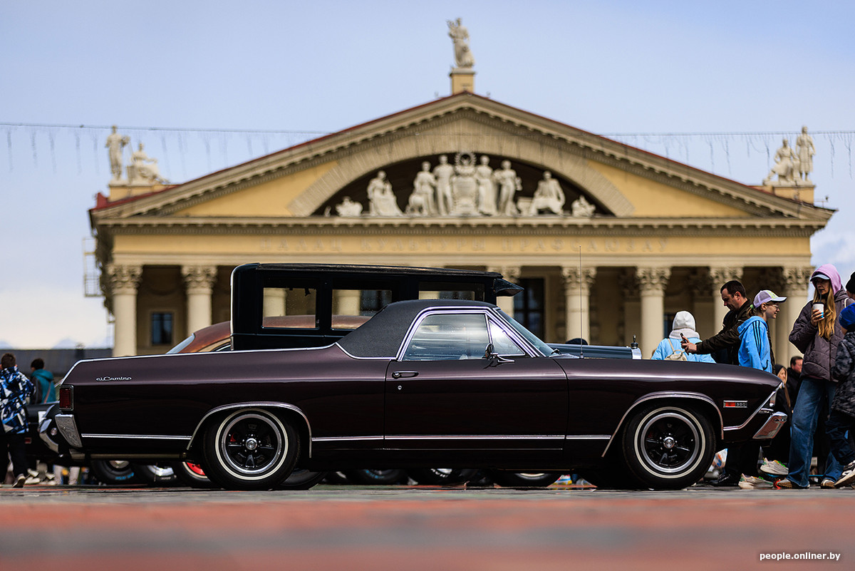 Парад ретро-автомобилей на Октябрьской площади. Ради них в центре на некоторое время перекрыли движение. Май, Минск.