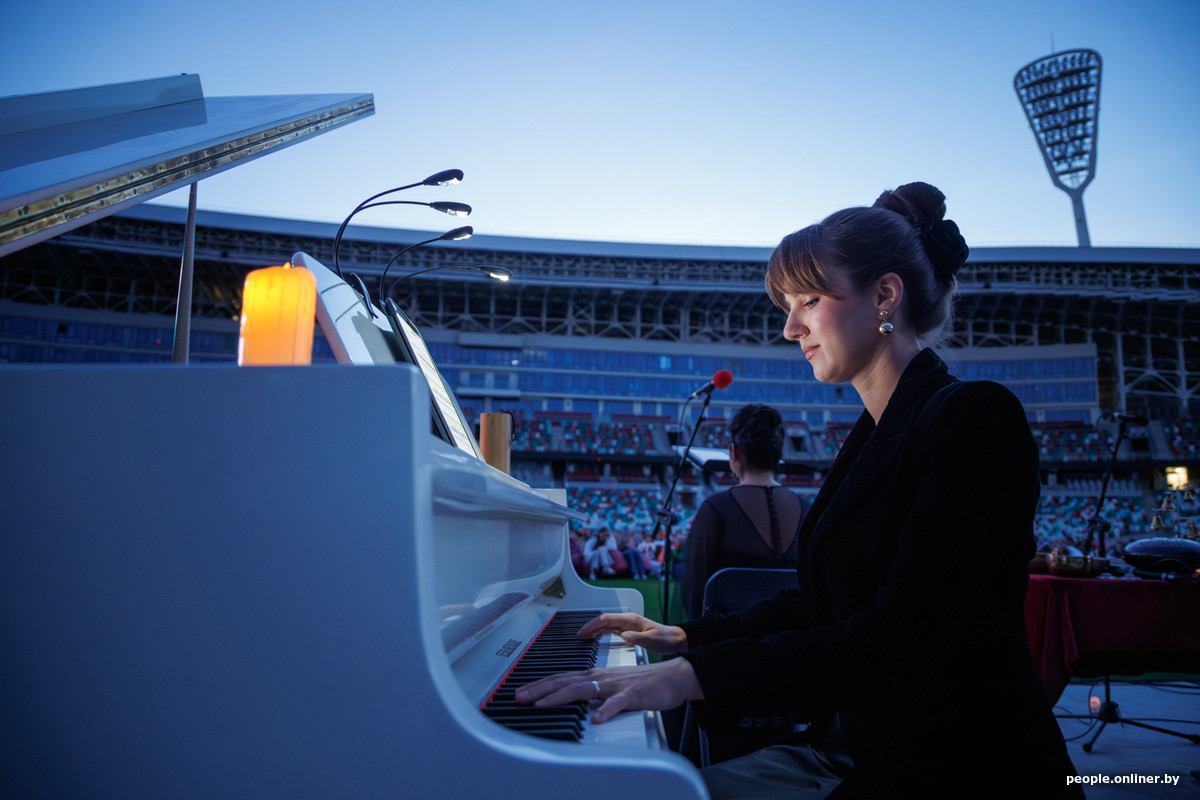 Летом на стадионе «Динамо» прошел концерт классической музыки, который можно было слушать, лежа на пуфиках. Август, Минск.