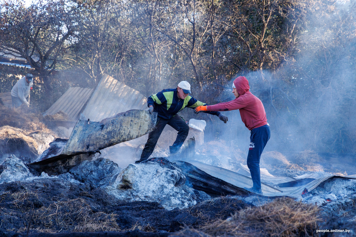 Трагедия на ферме в Лошанах: во время пожара погибли 28 коров и телят. Сентябрь, Минский район.