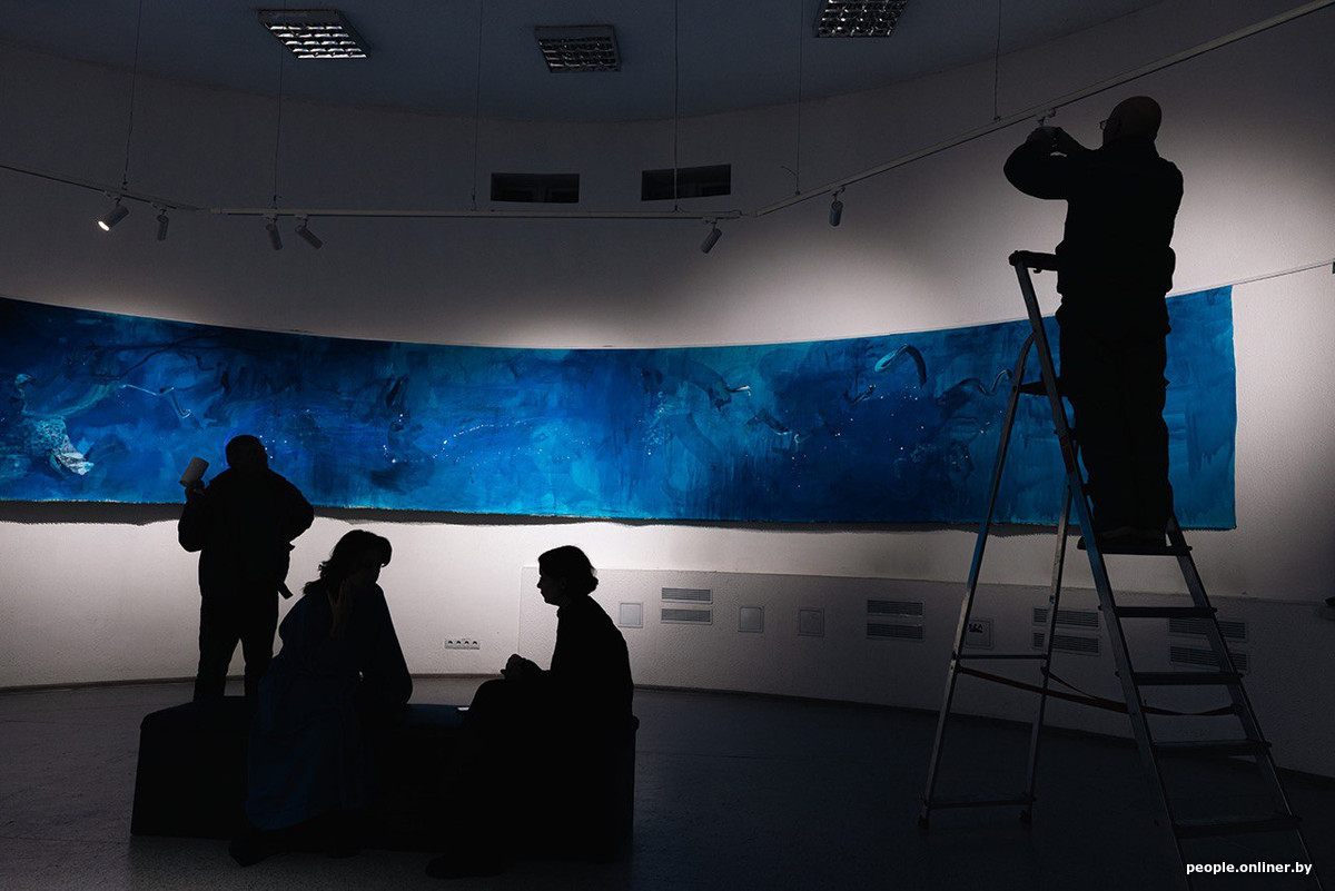 Подготовка к открытию персональной выставки художницы Вероники Рокашевич. Январь, Минск.