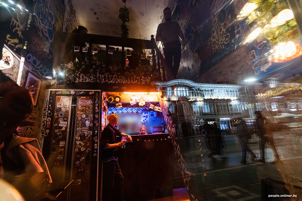 Бар «Парадная» устроен в обычном подъезде жилого дома. Он считается одним из самых маленьких заведений Беларуси. Январь, Гомель.