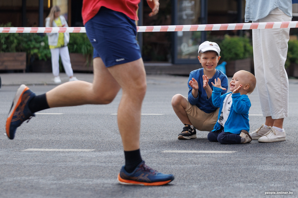 Маленькие болельщики наблюдают за участниками Минского полумарафона. Сентябрь, Минск.