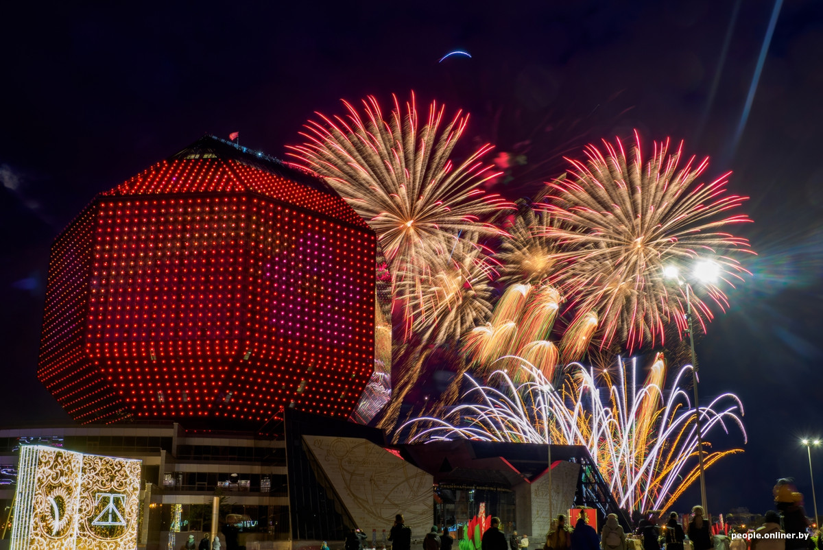 Салют на 9 Мая у Национальной библиотеки. Май, Минск.