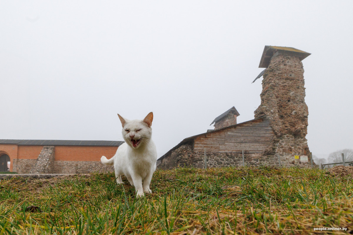 Кот гуляет рядом со стенами Кревского замка. Ноябрь, Сморгонский район.